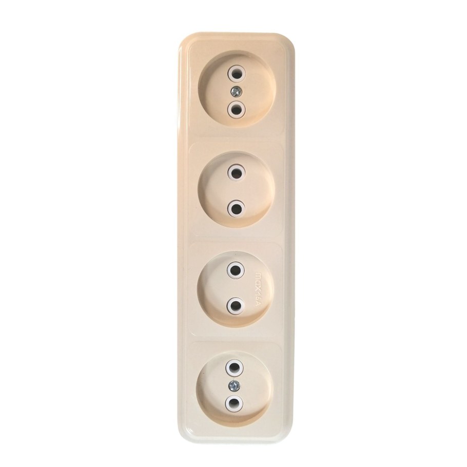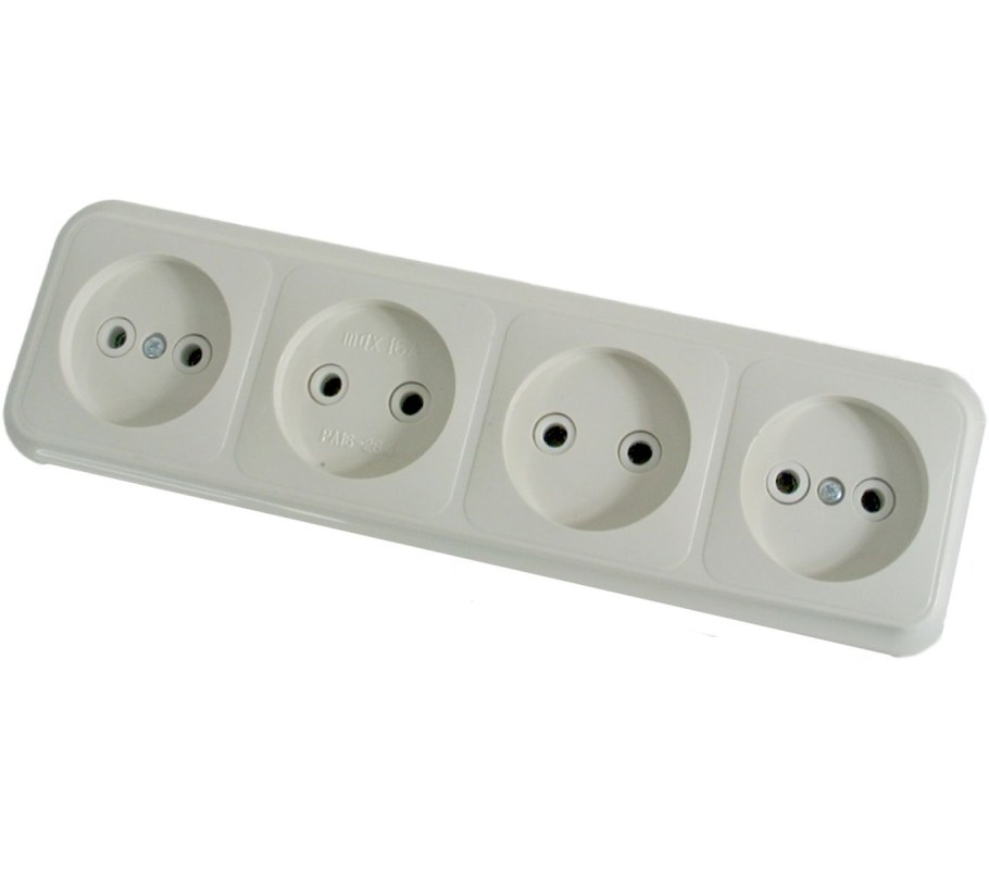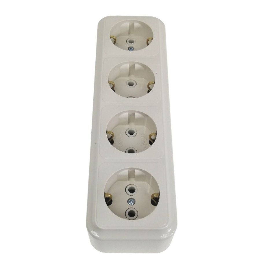 Рим розетка 4-местная 16а с заземлением белая EKF