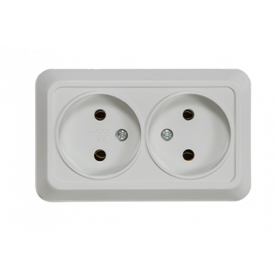 Розетка 2-м ОП Олимп 16а ip20 без зазем. Бел. Universal о0102