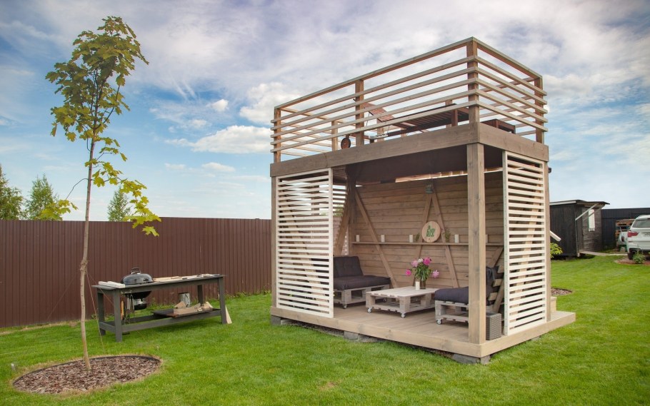 Двухэтажная беседка 5 на 5 с закрытым вторым этажом