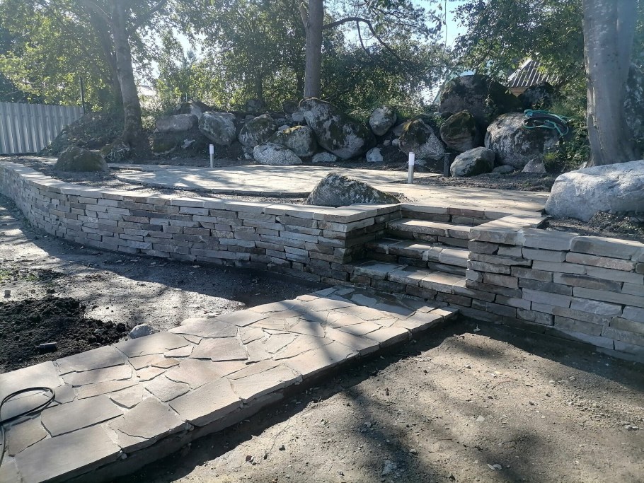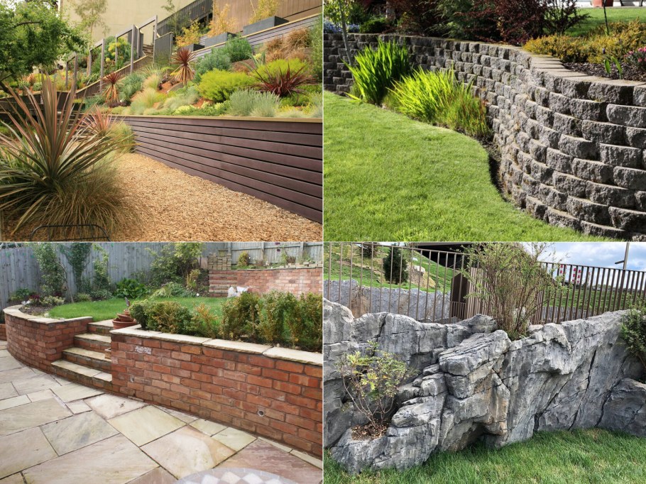 Подпорные стены с добавлением имитации дерева из архитектурного бетона (71 фото)