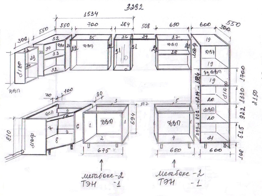 Проекты кухонных гарнитуров с размерами