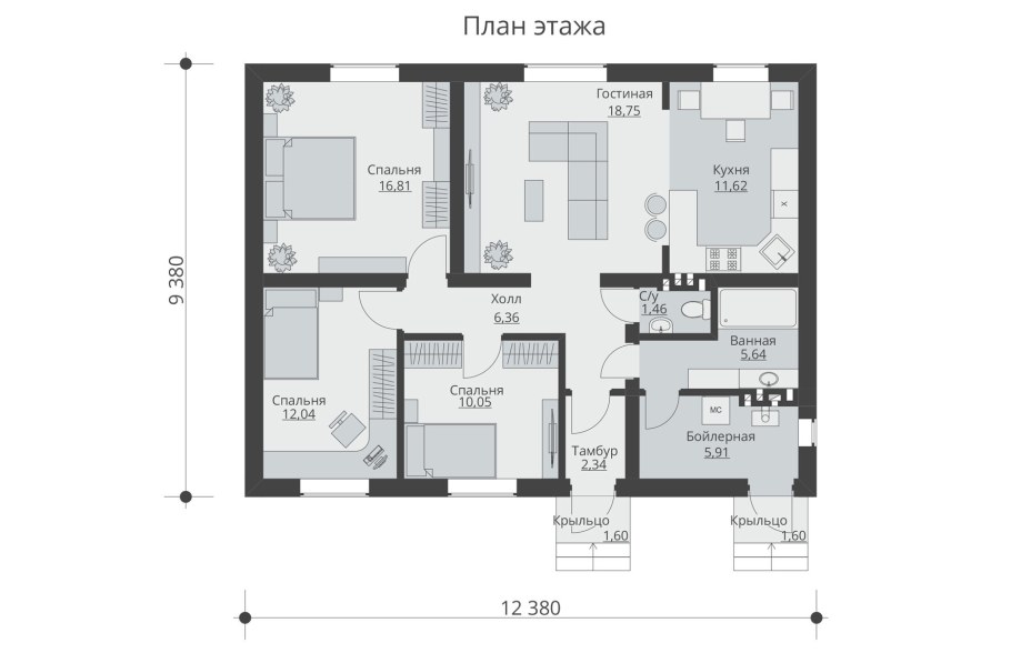 Одноэтажный дом 70м2 планировка с 3 спальнями