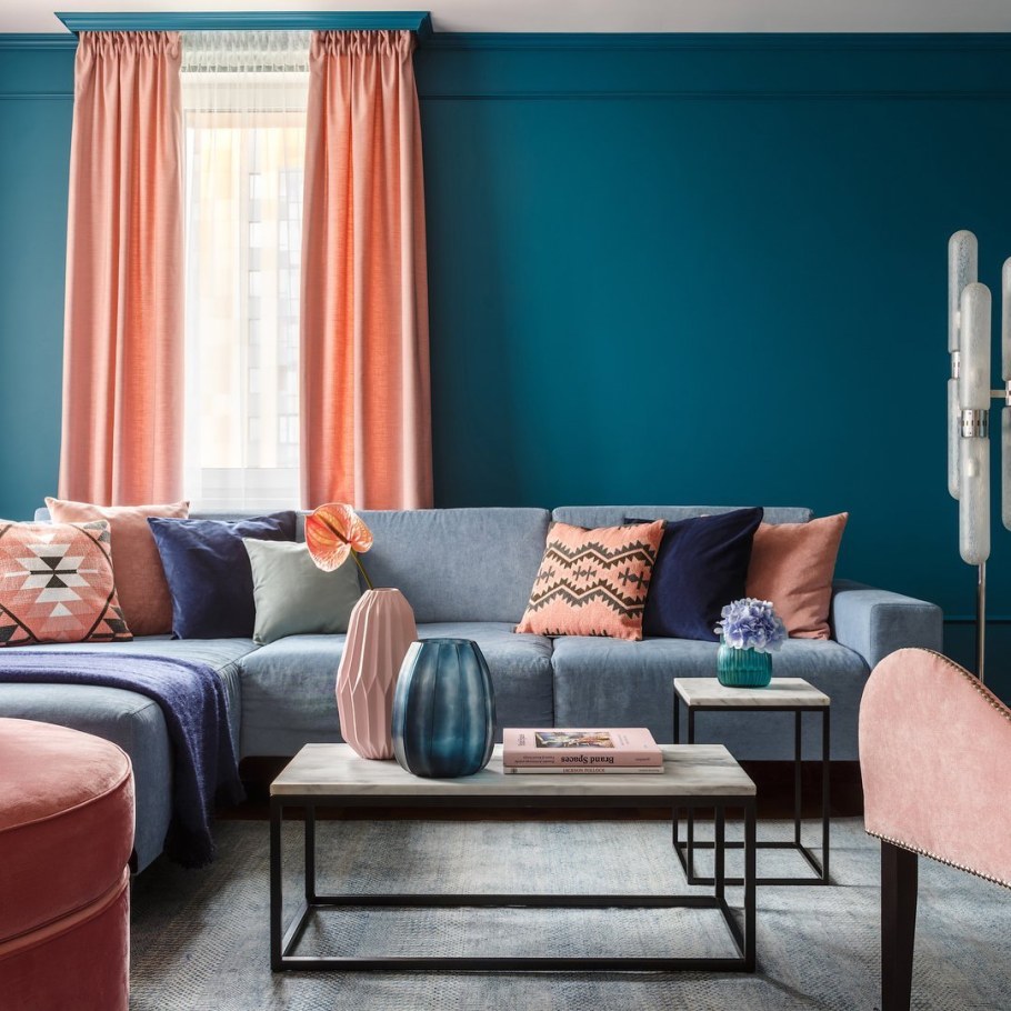 Интерьер сочетание терракотовых стен с синим (74 фото)
