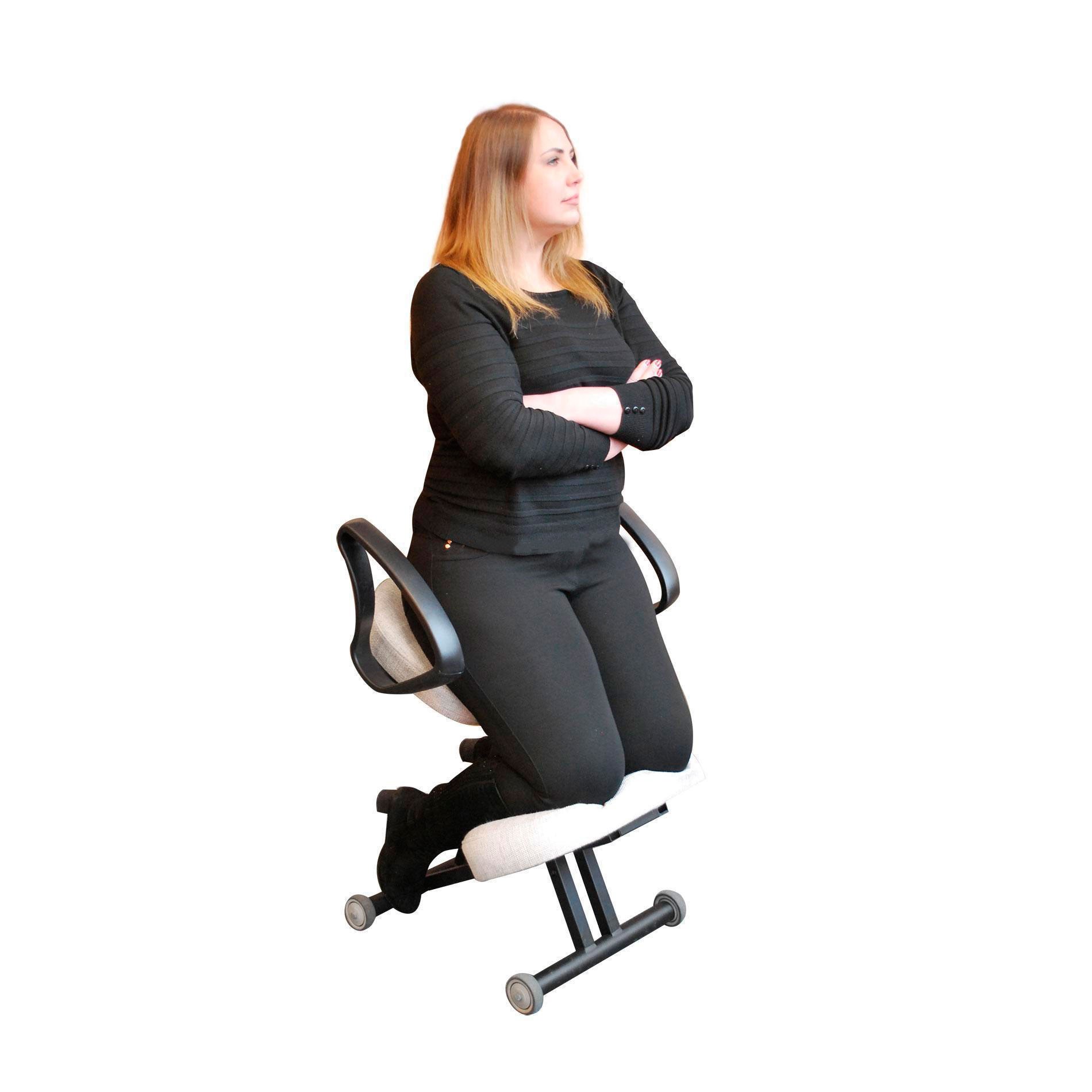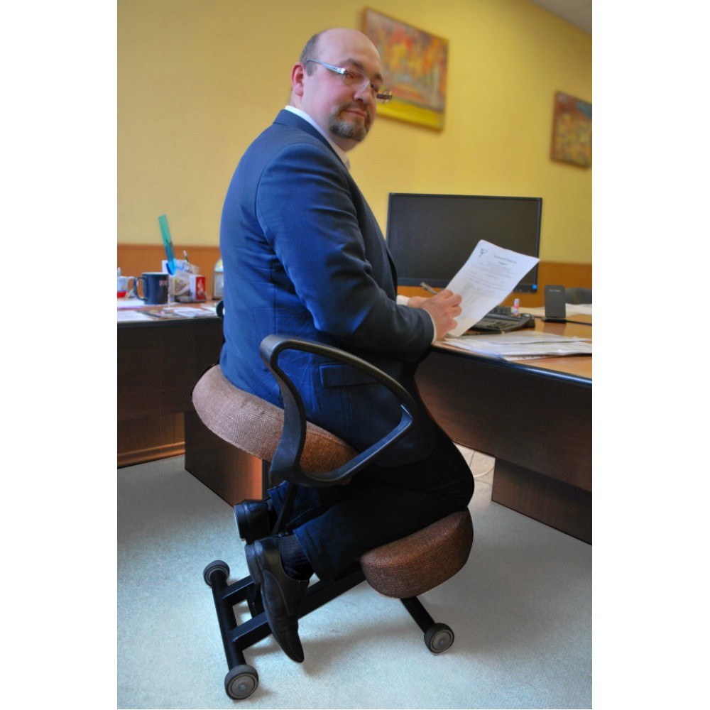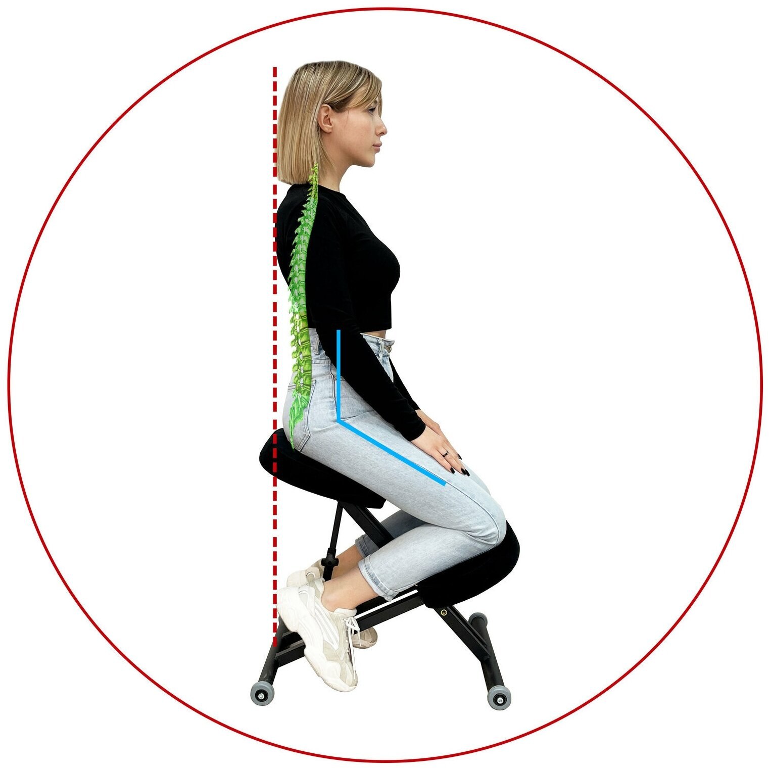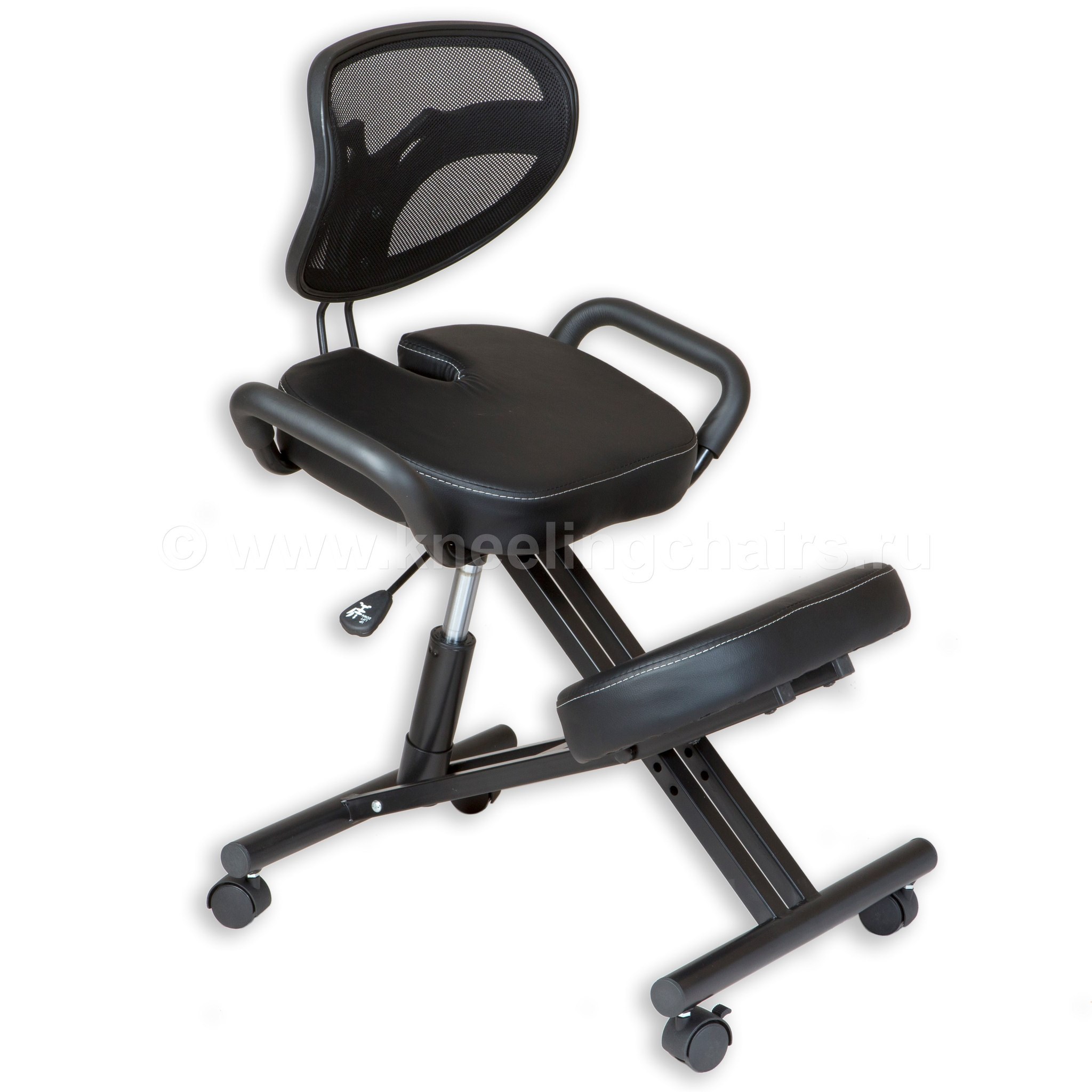Металлический коленный стул Smartstool km01bm со спинкой (цвет обивки:черный)