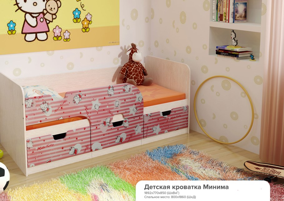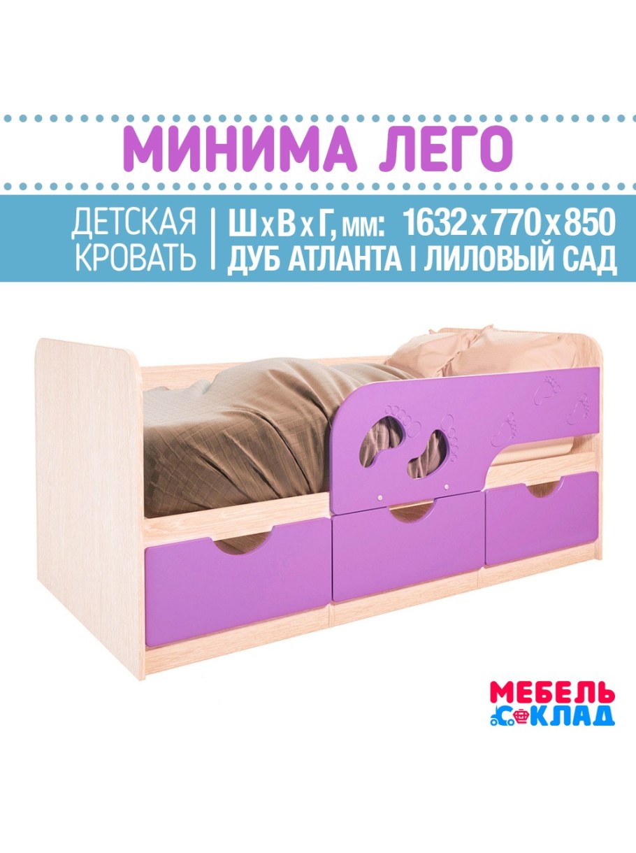 Кровать детская "Минима лего 1,6"дуб Атланта/крем