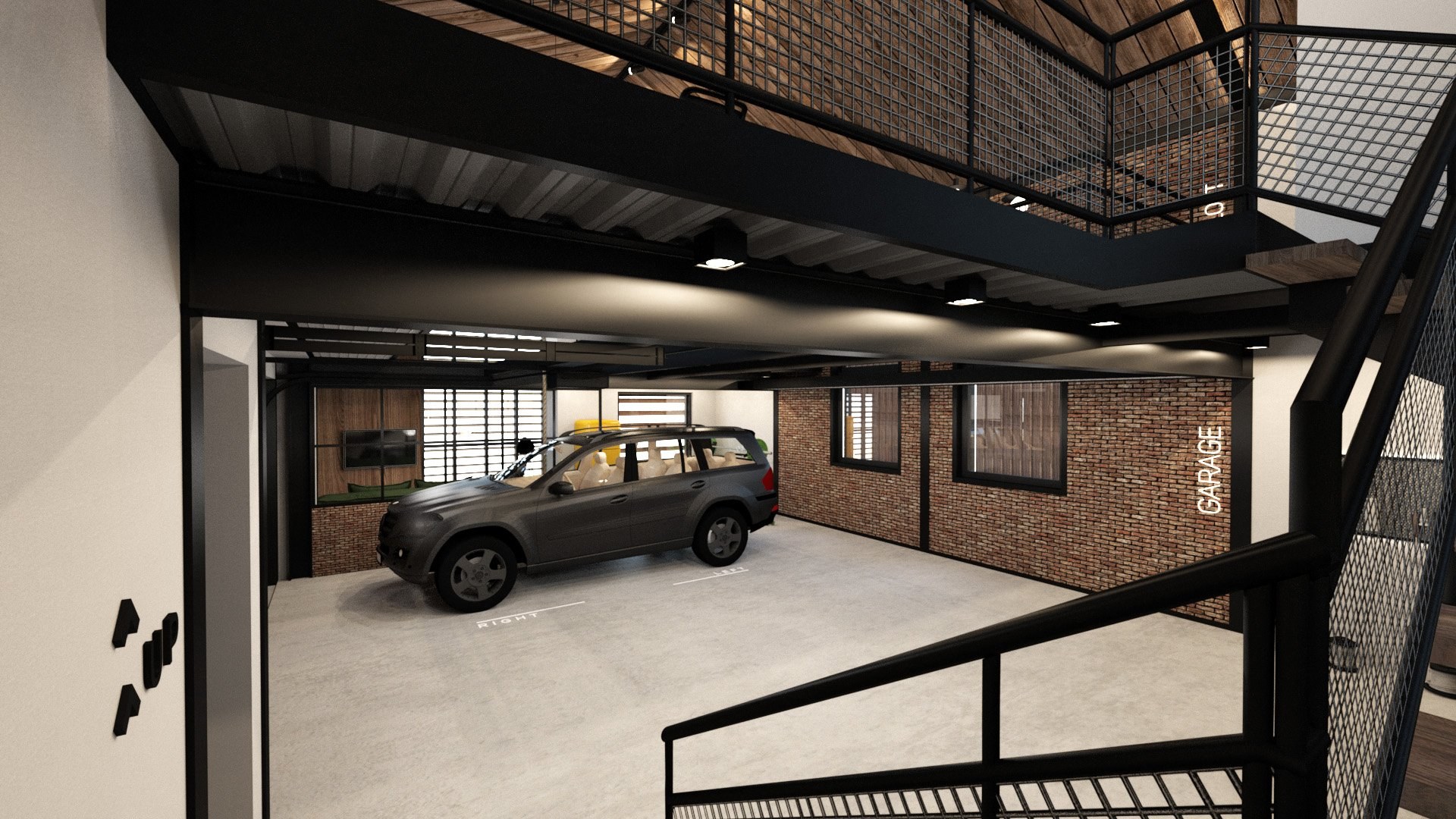 Интерьер двухэтажного гаража