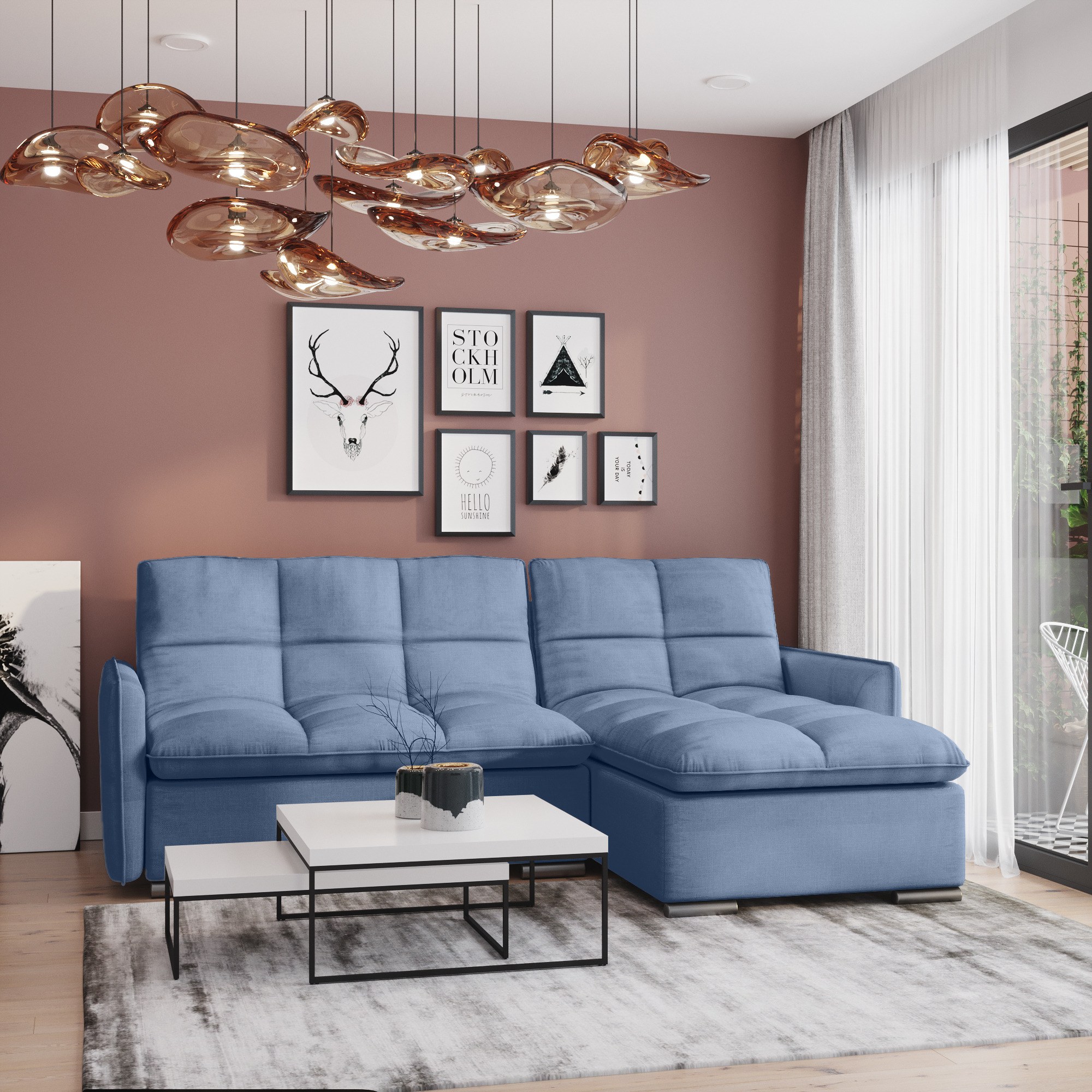 Угловой диван Скандинавия синий