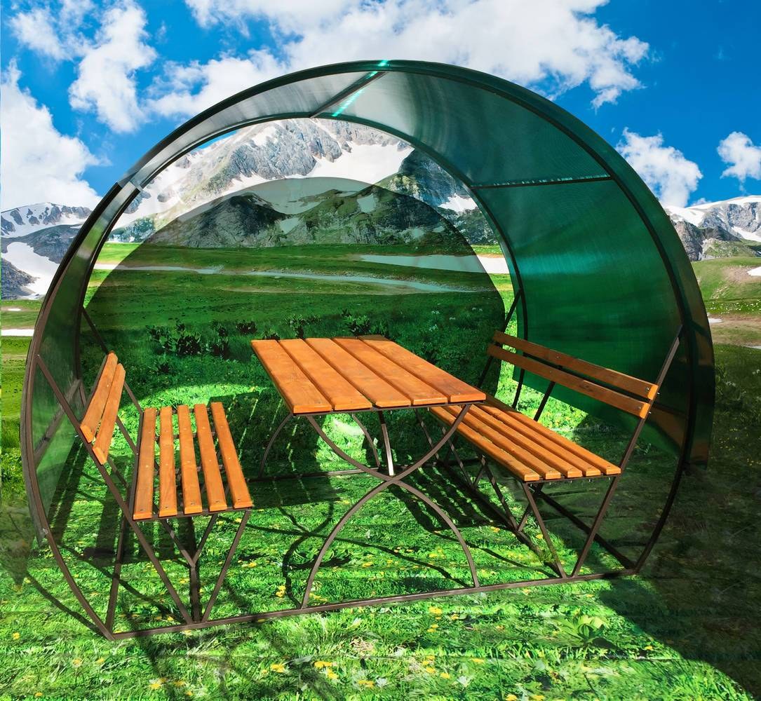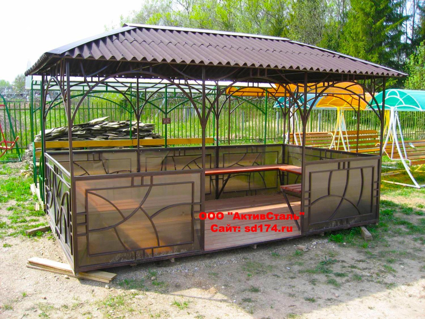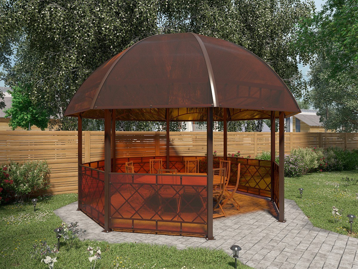 Беседка Садовая металлическая 286x268x249 см с крышей из поликарбоната