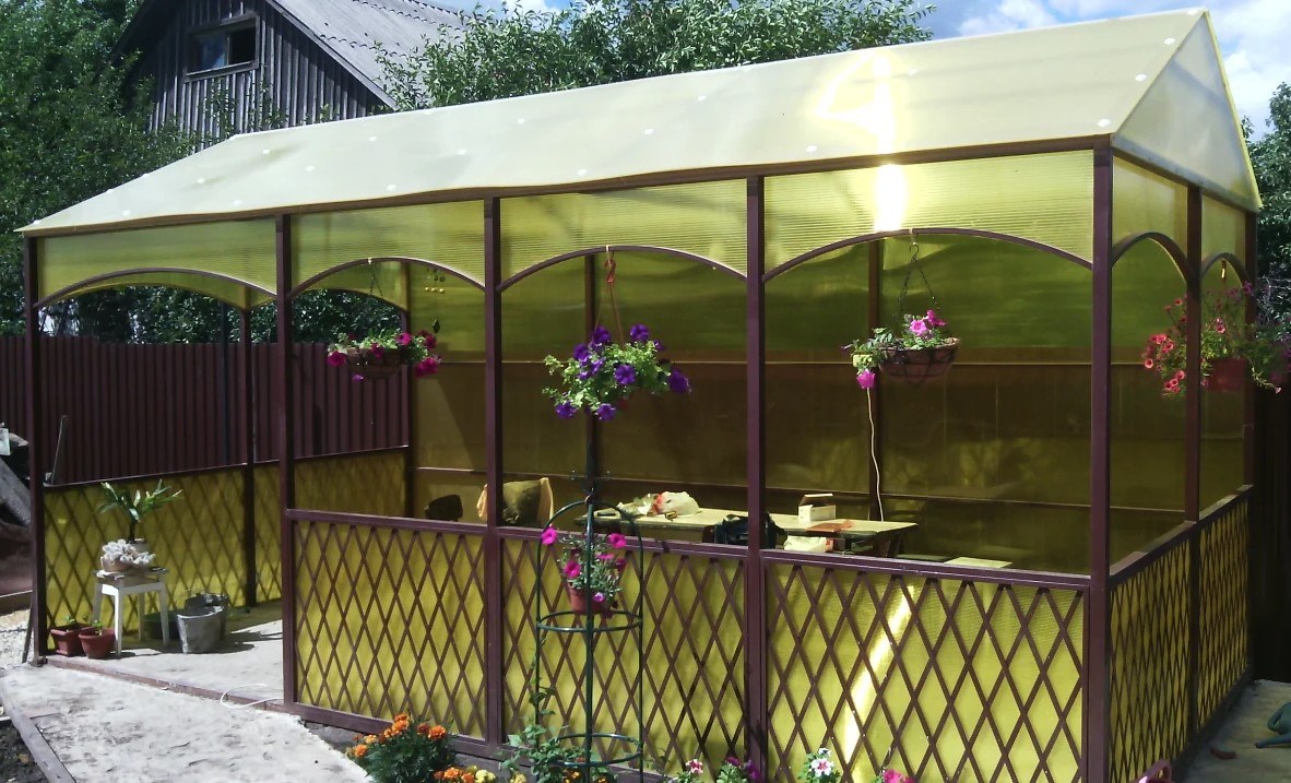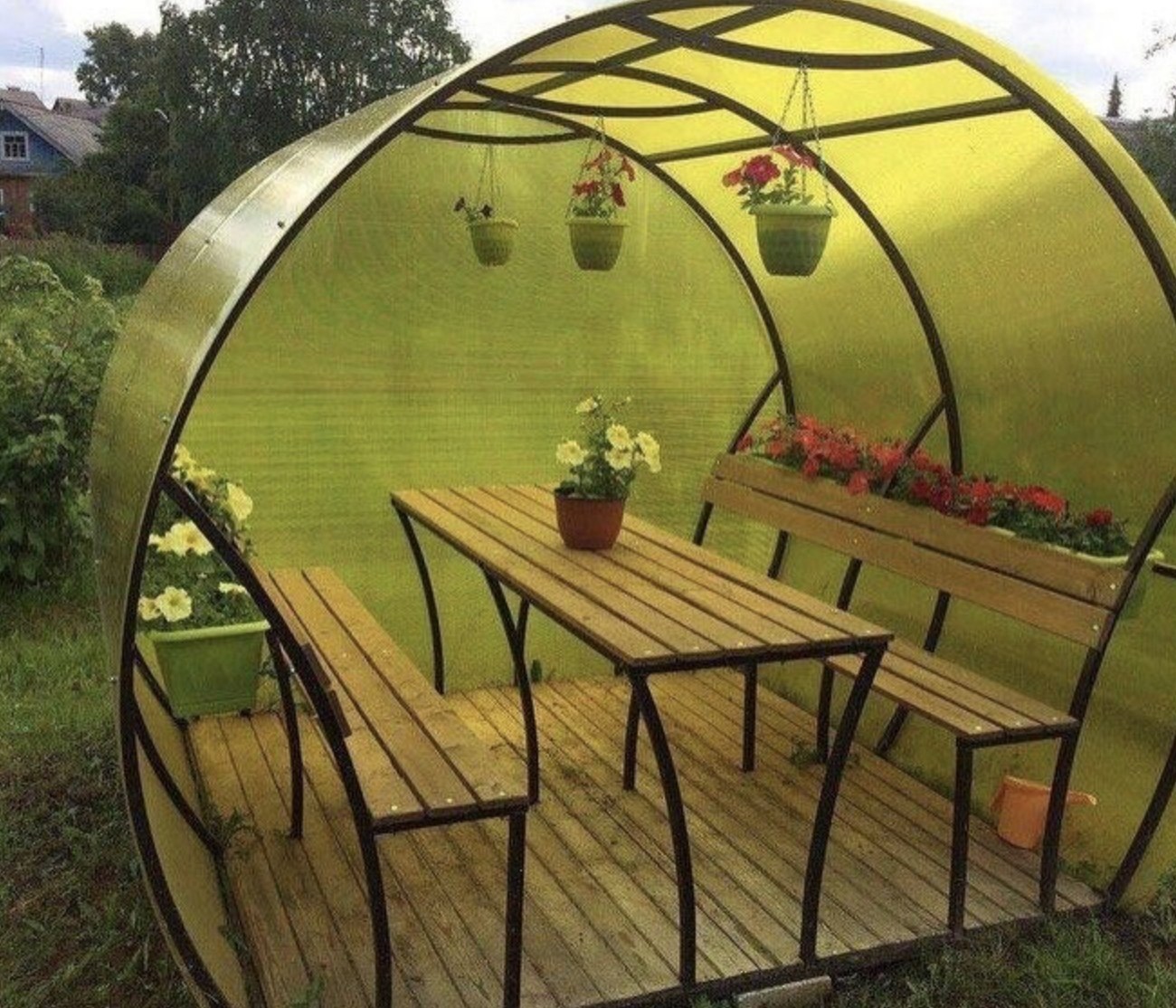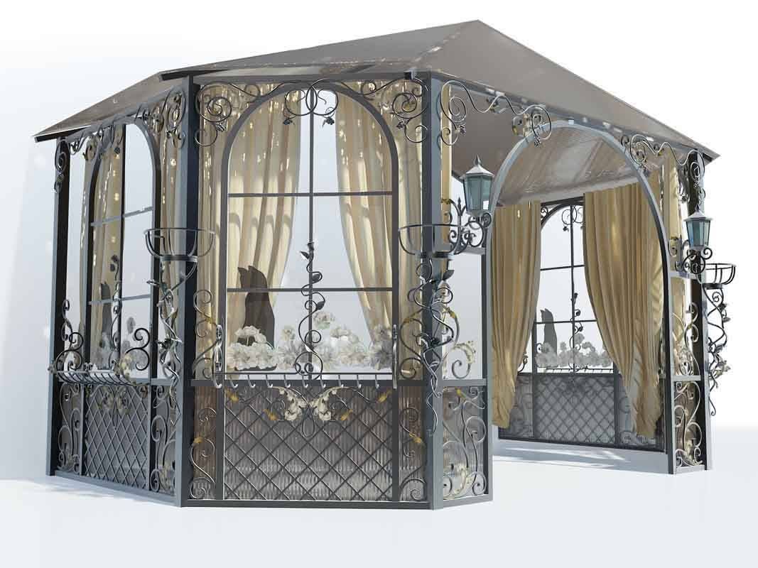 Беседка Садовая металлическая 286x268x249 см с крышей из поликарбоната
