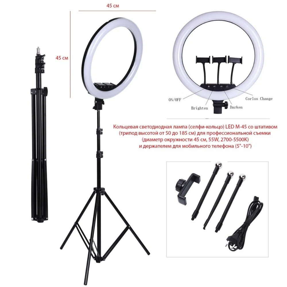Кольцевая лампа с держателем для телефона (d-33см)+штатив-трипод 75-210см