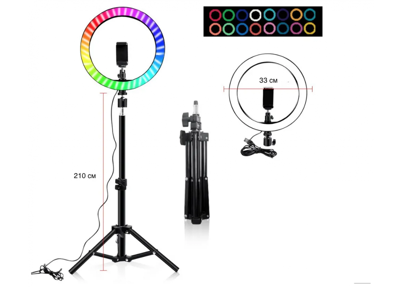 Кольцевая лампа mj33 RGB 33 см со штативом