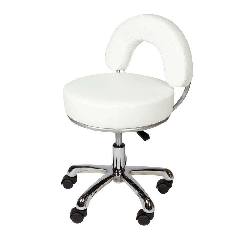Стул мастера со спинкой и регулировкой высоты на колесиках, белый