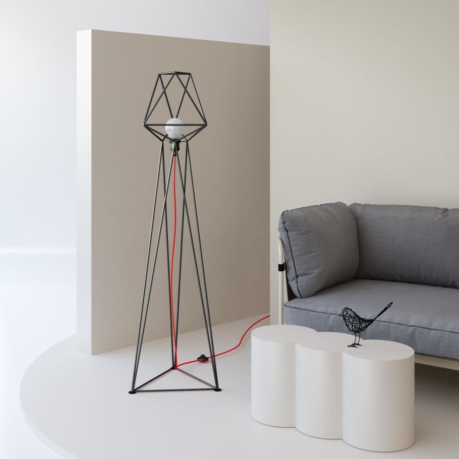 Торшер с треногой из ясеня и абажуром из льна, Setto