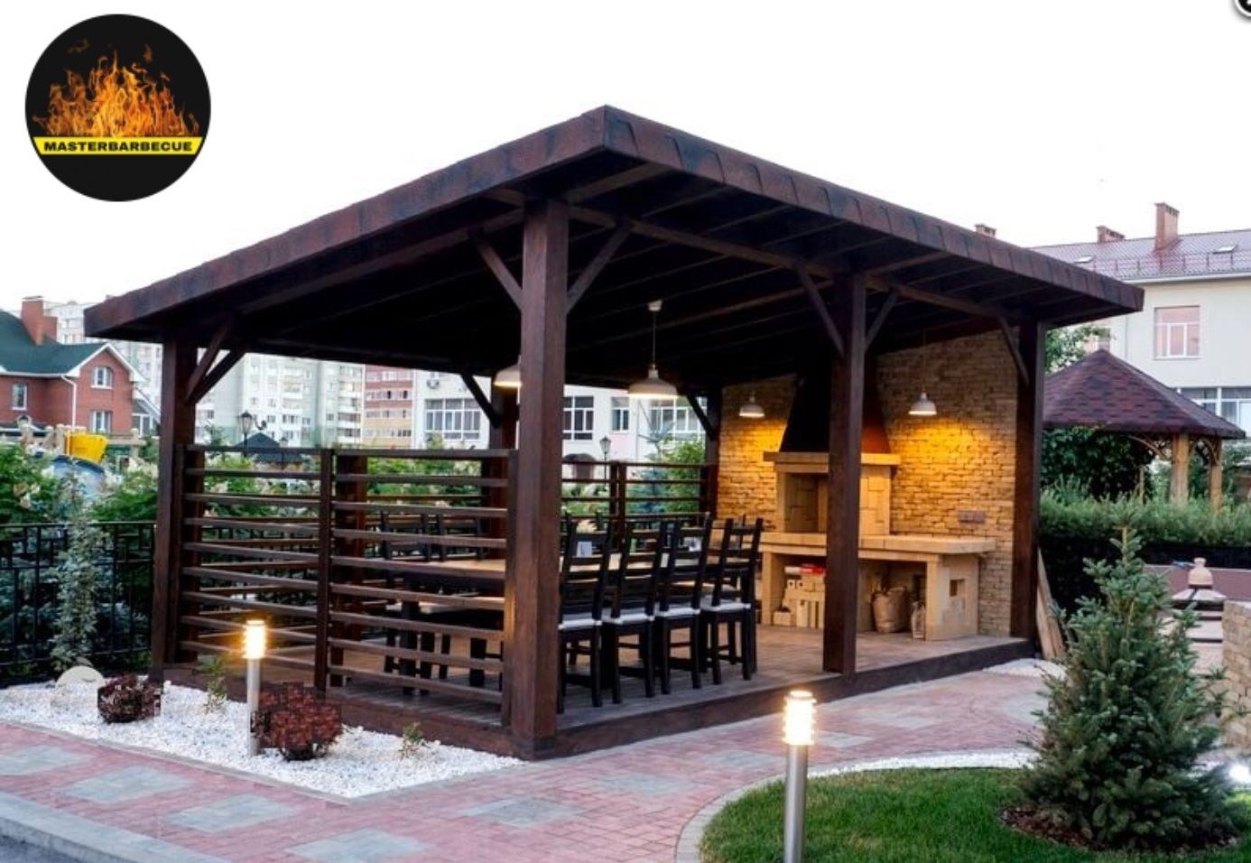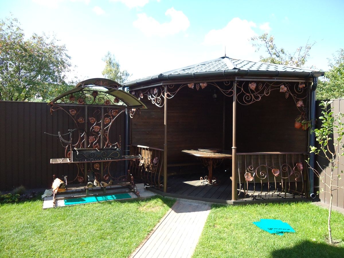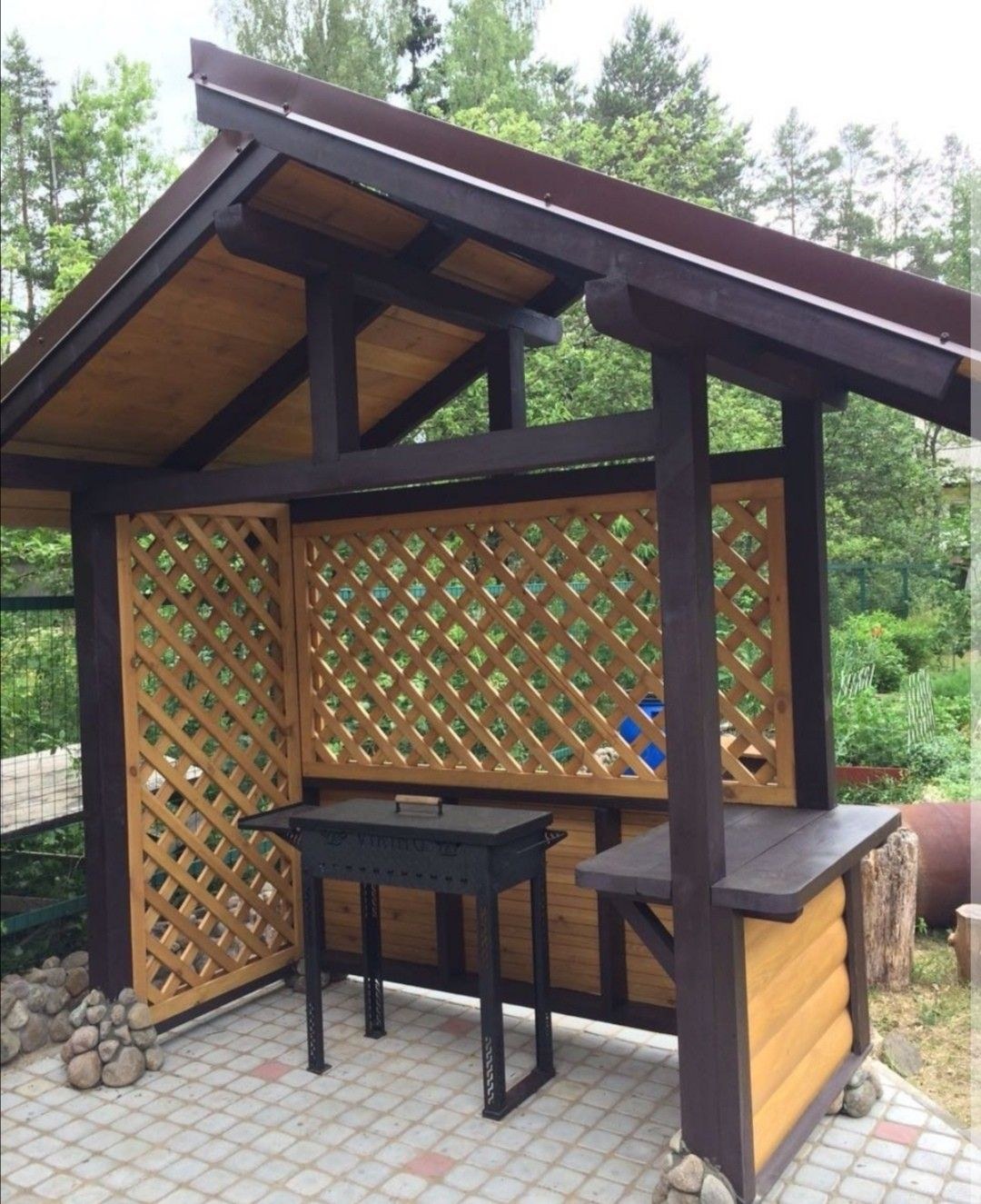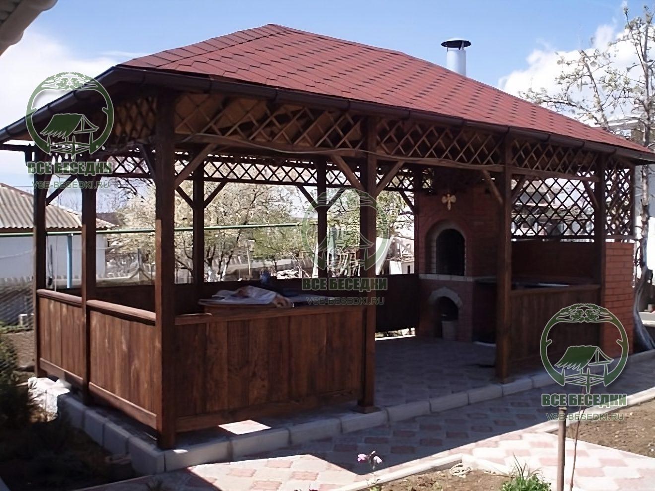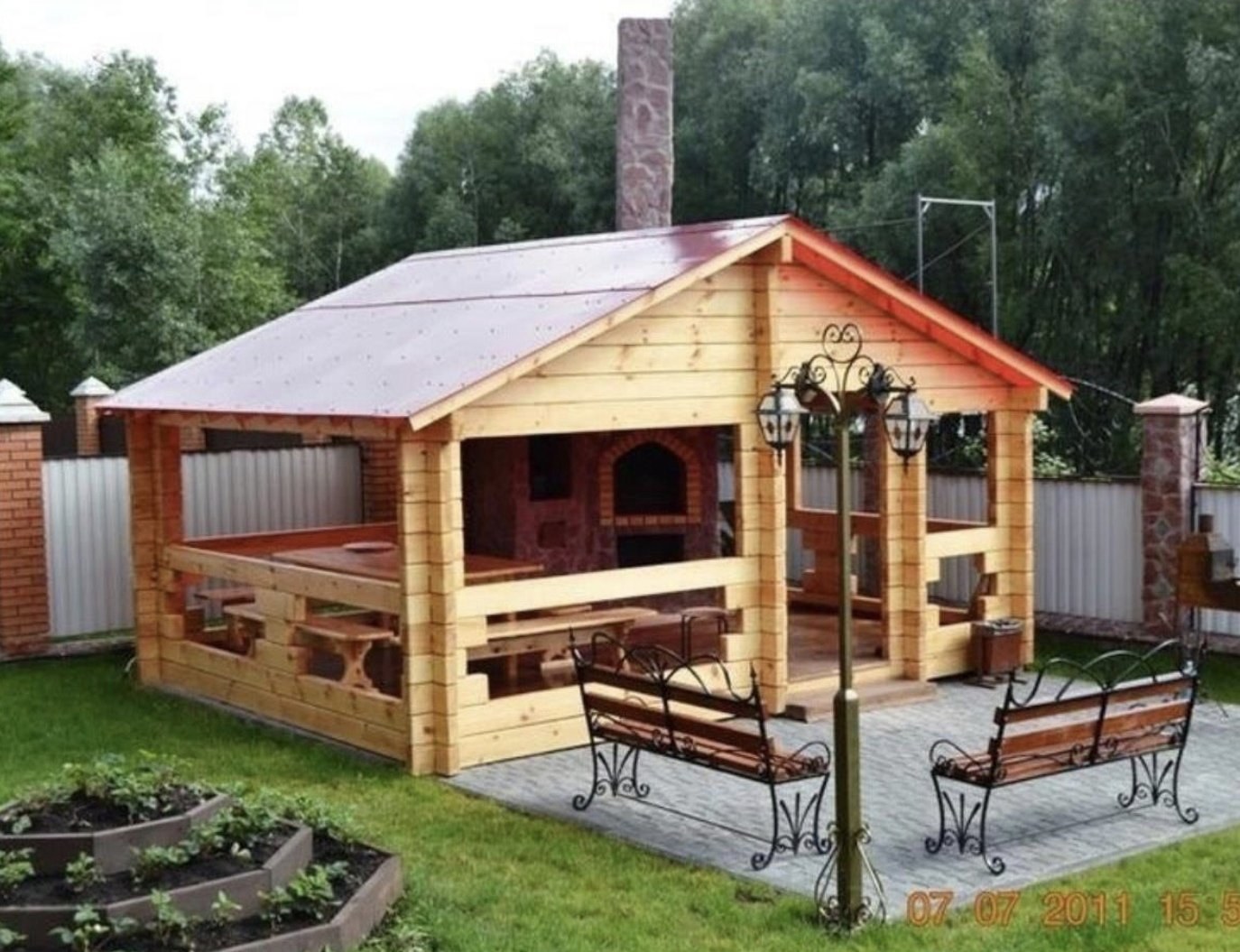 Деревянная беседка с мангальной зоной из металла (76 фото)