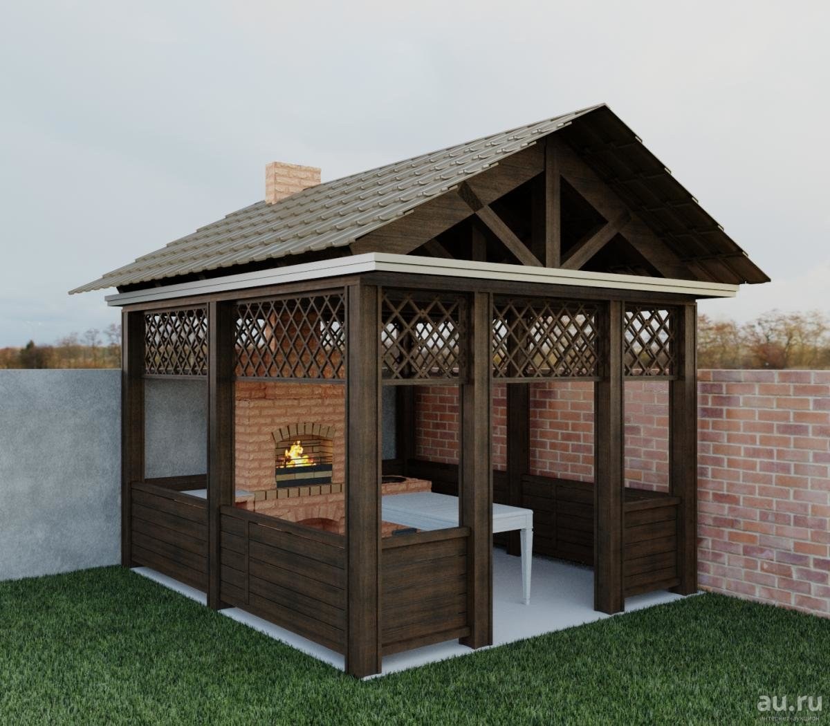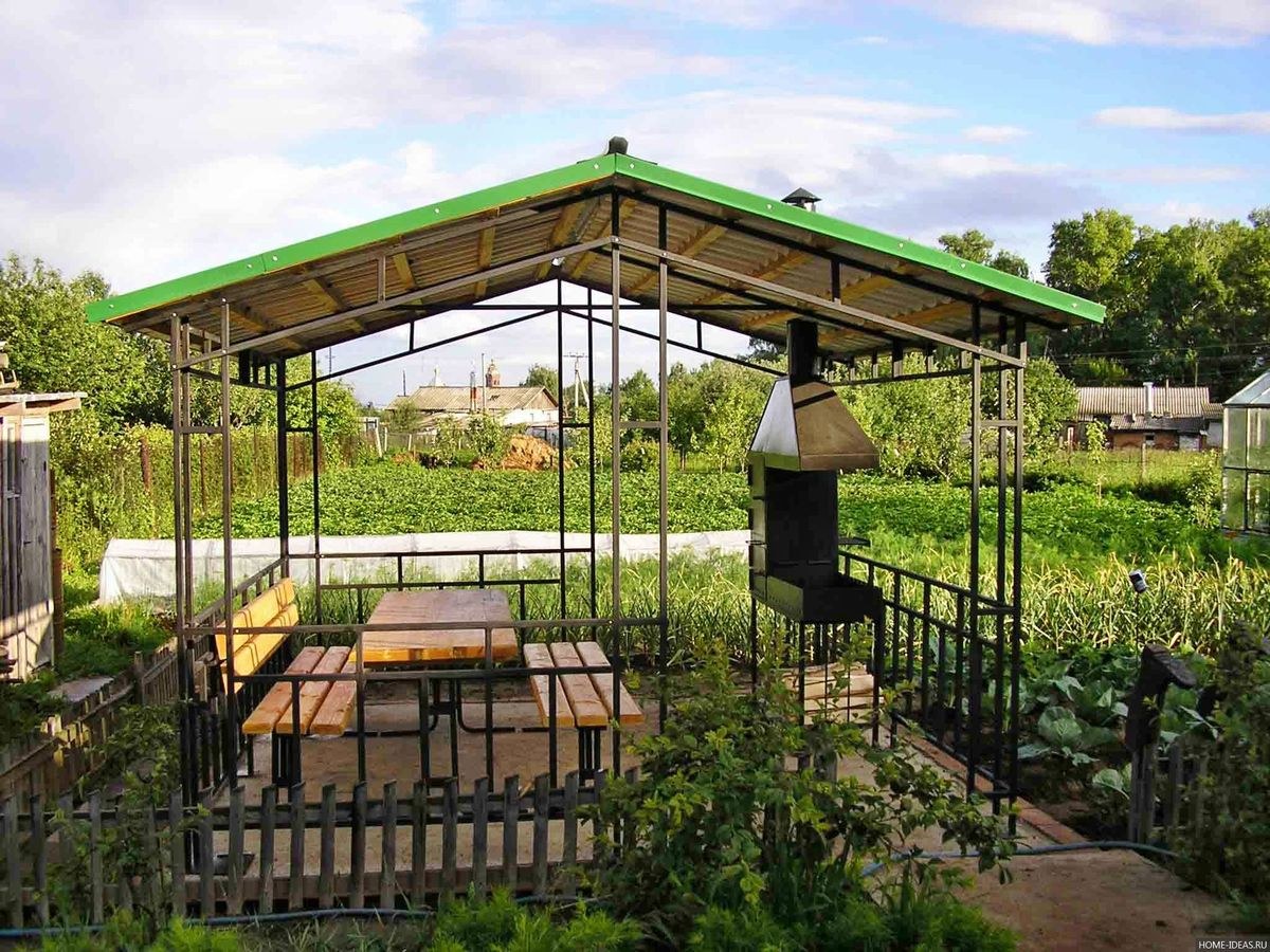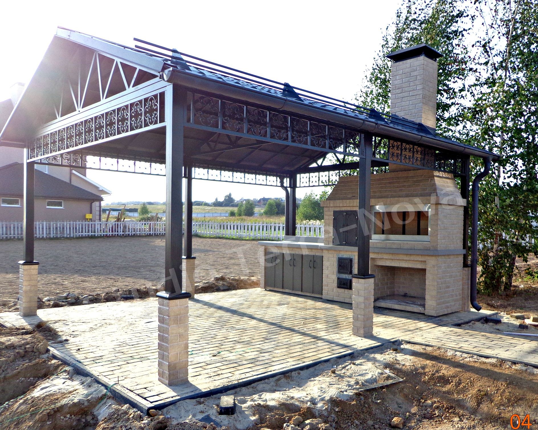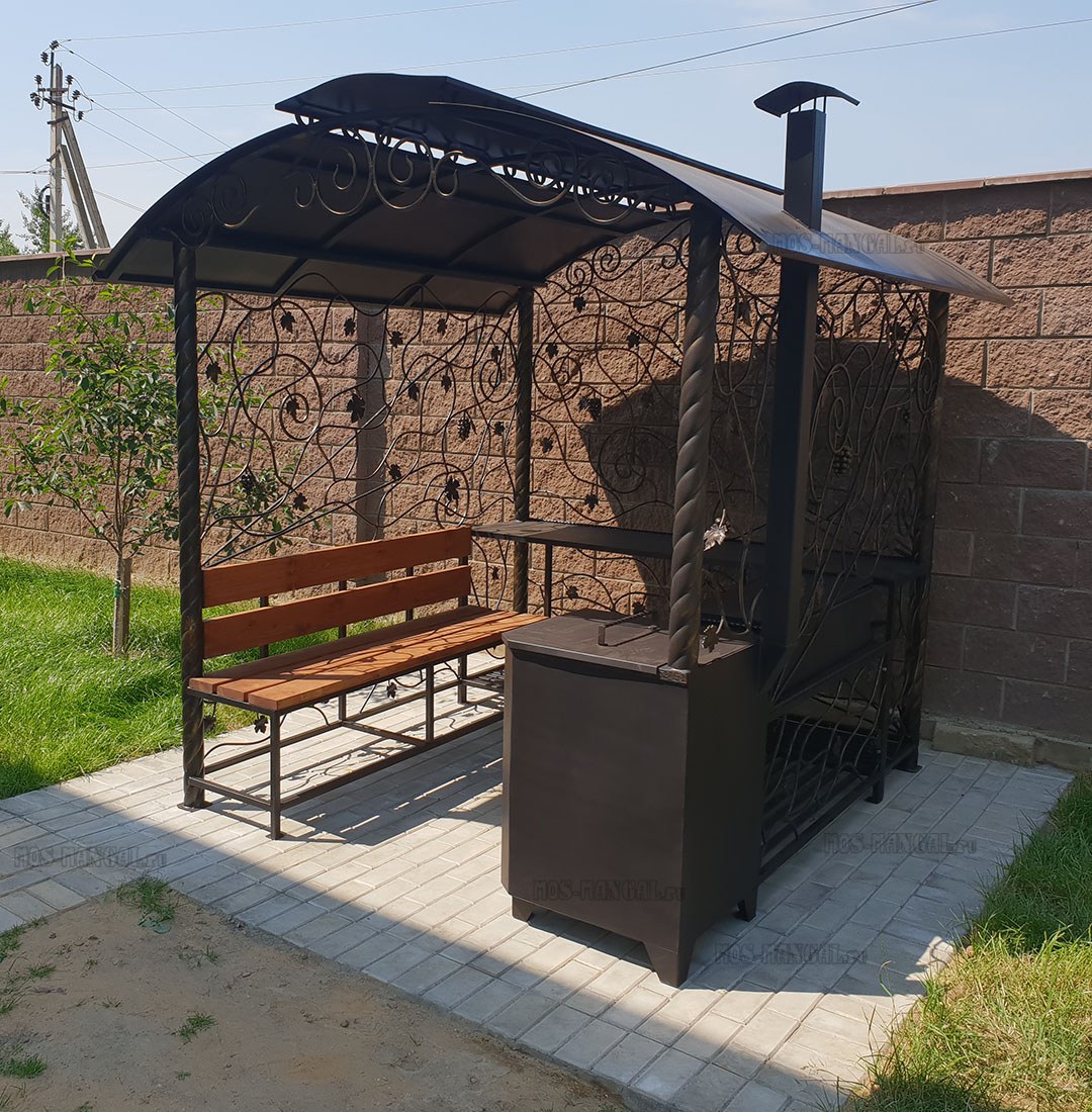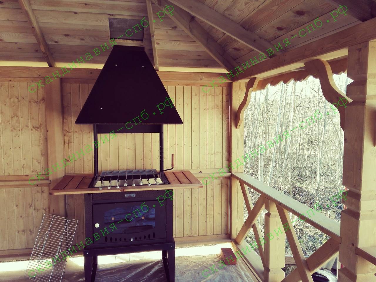 Деревянная беседка с мангальной зоной из металла (76 фото)
