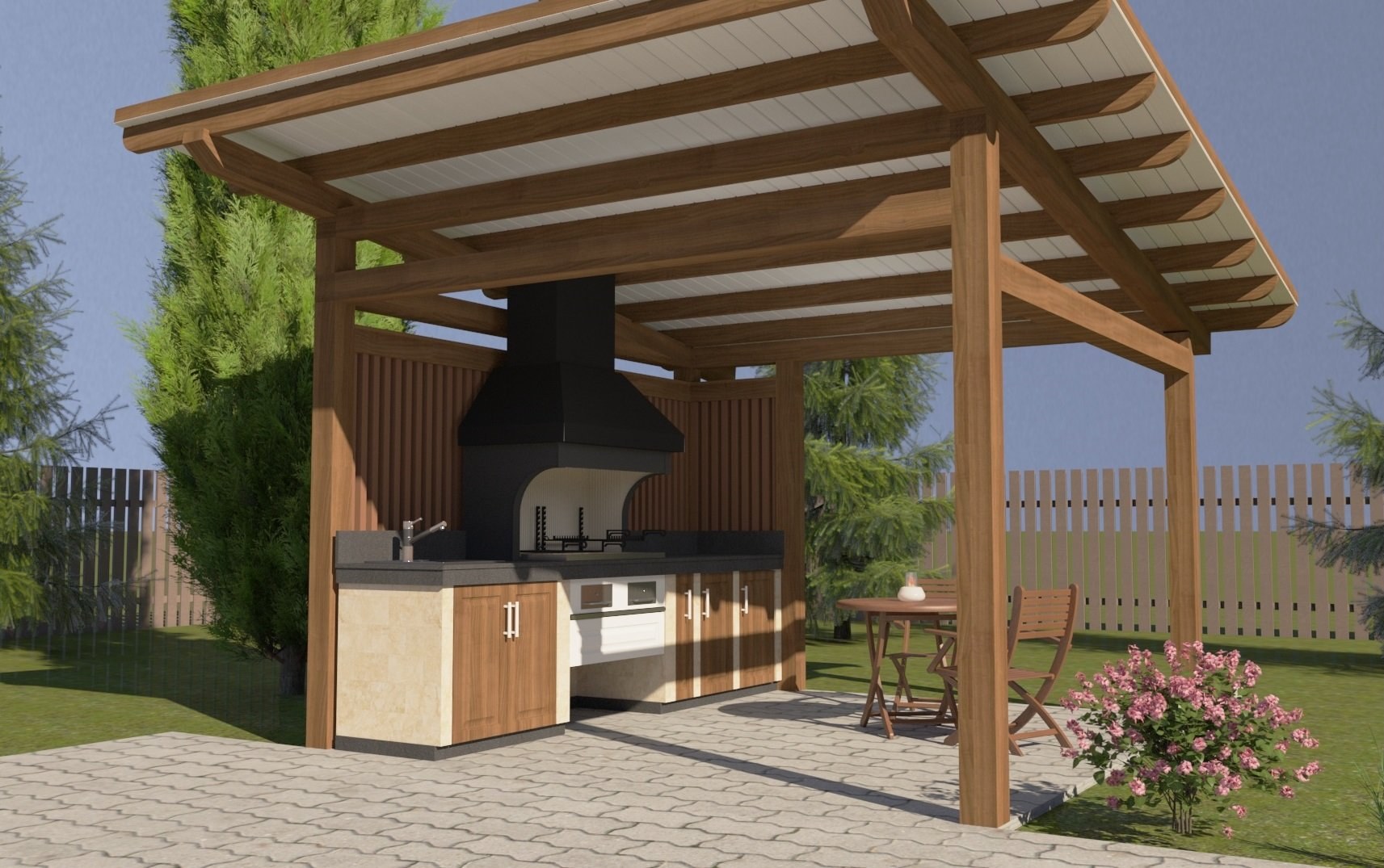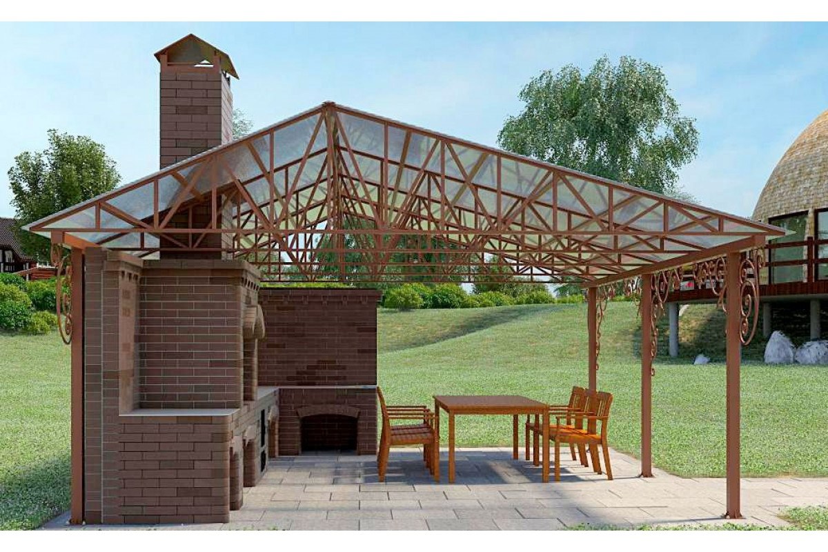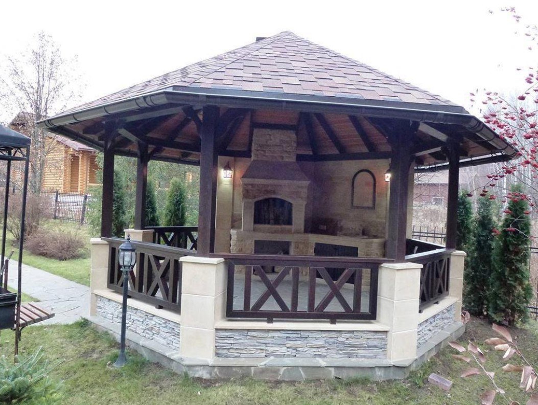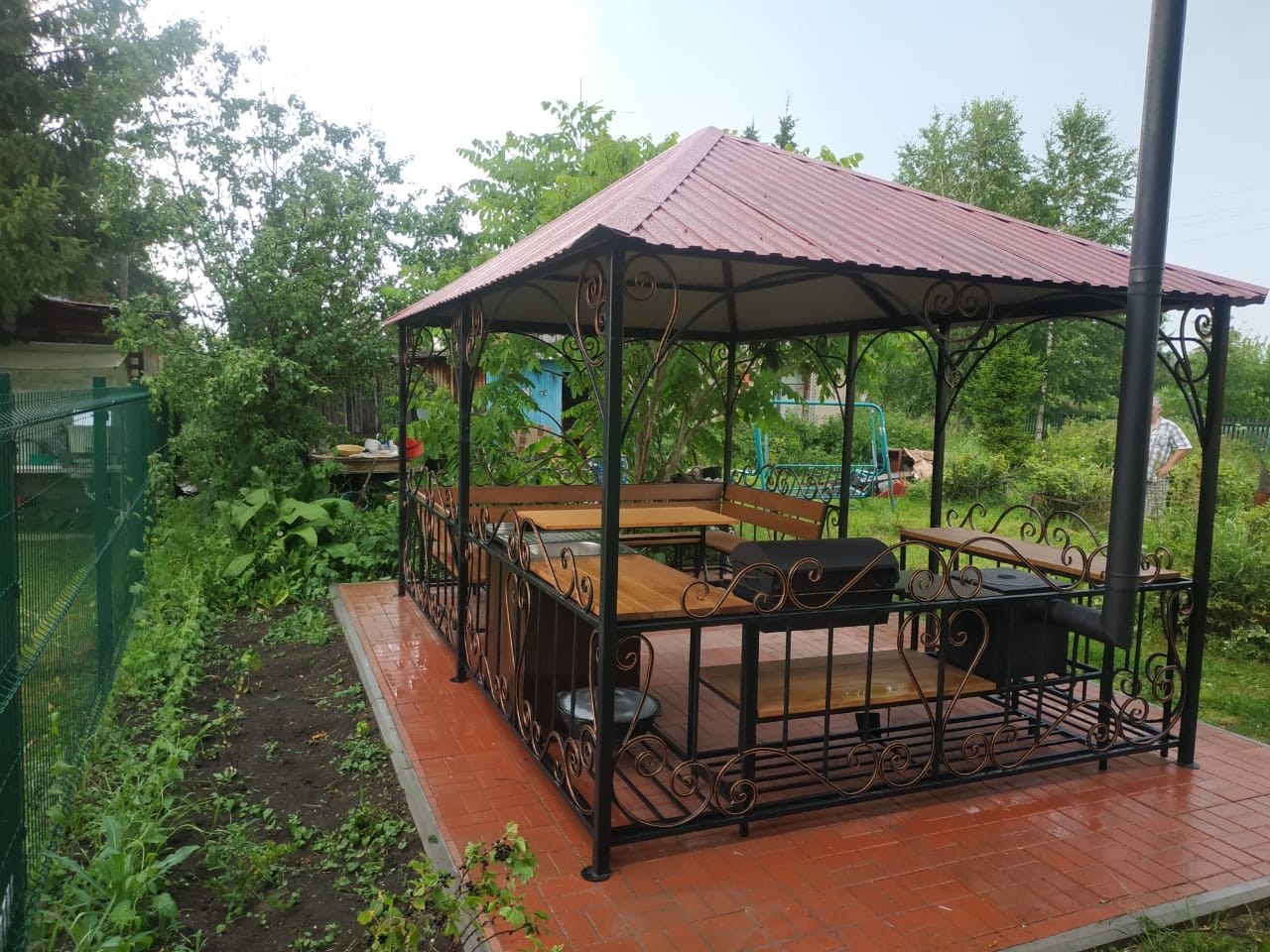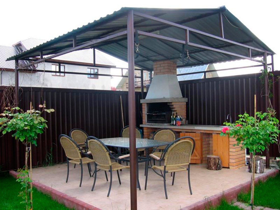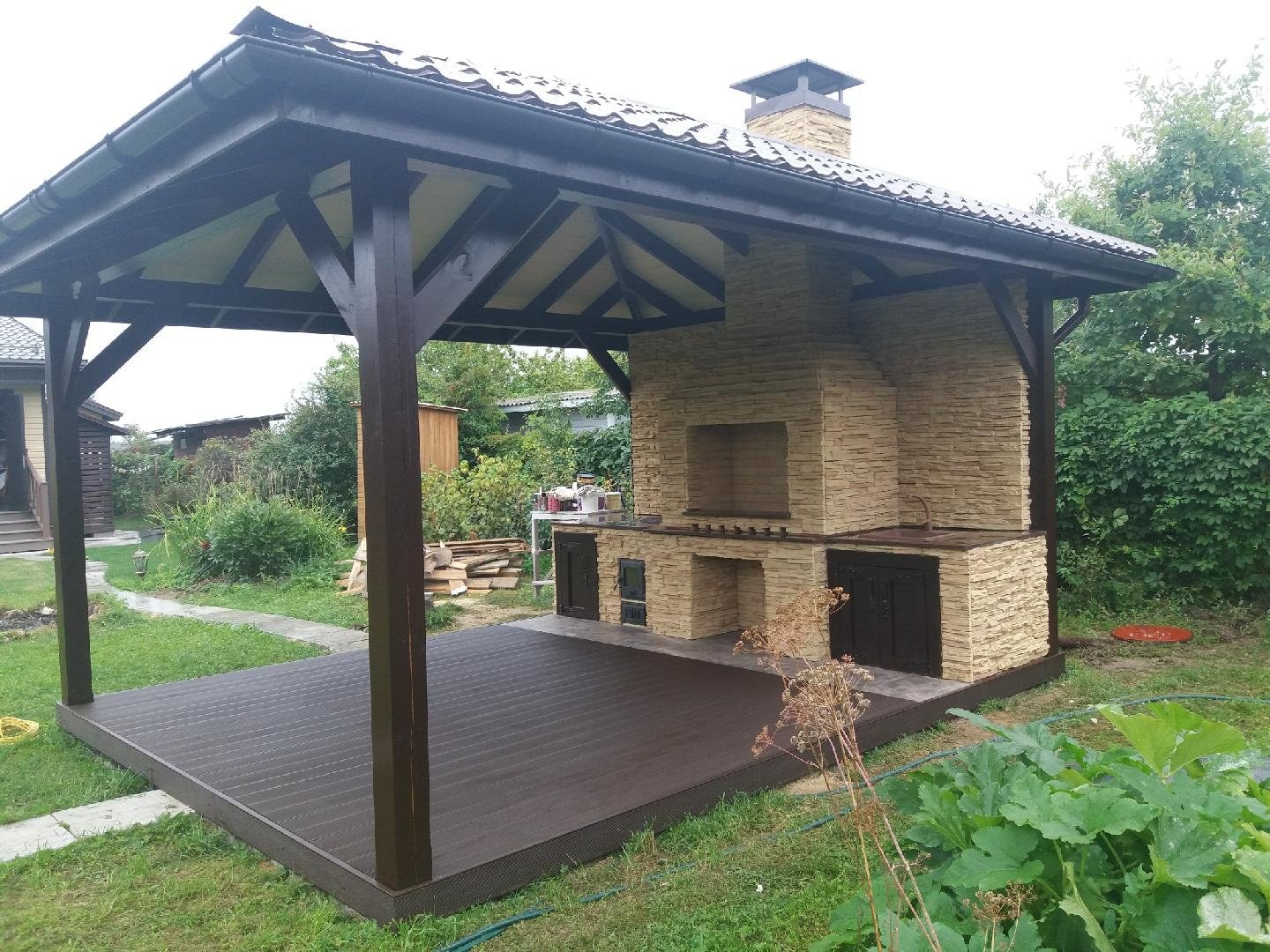 Деревянная беседка с мангальной зоной из металла (76 фото)