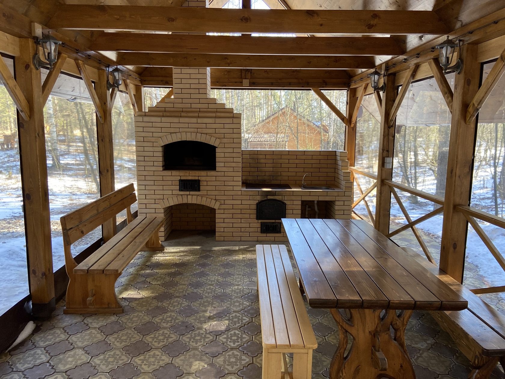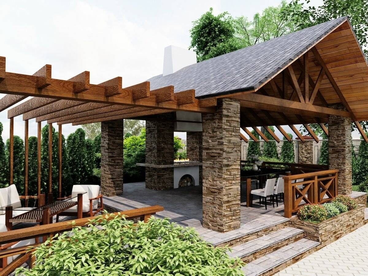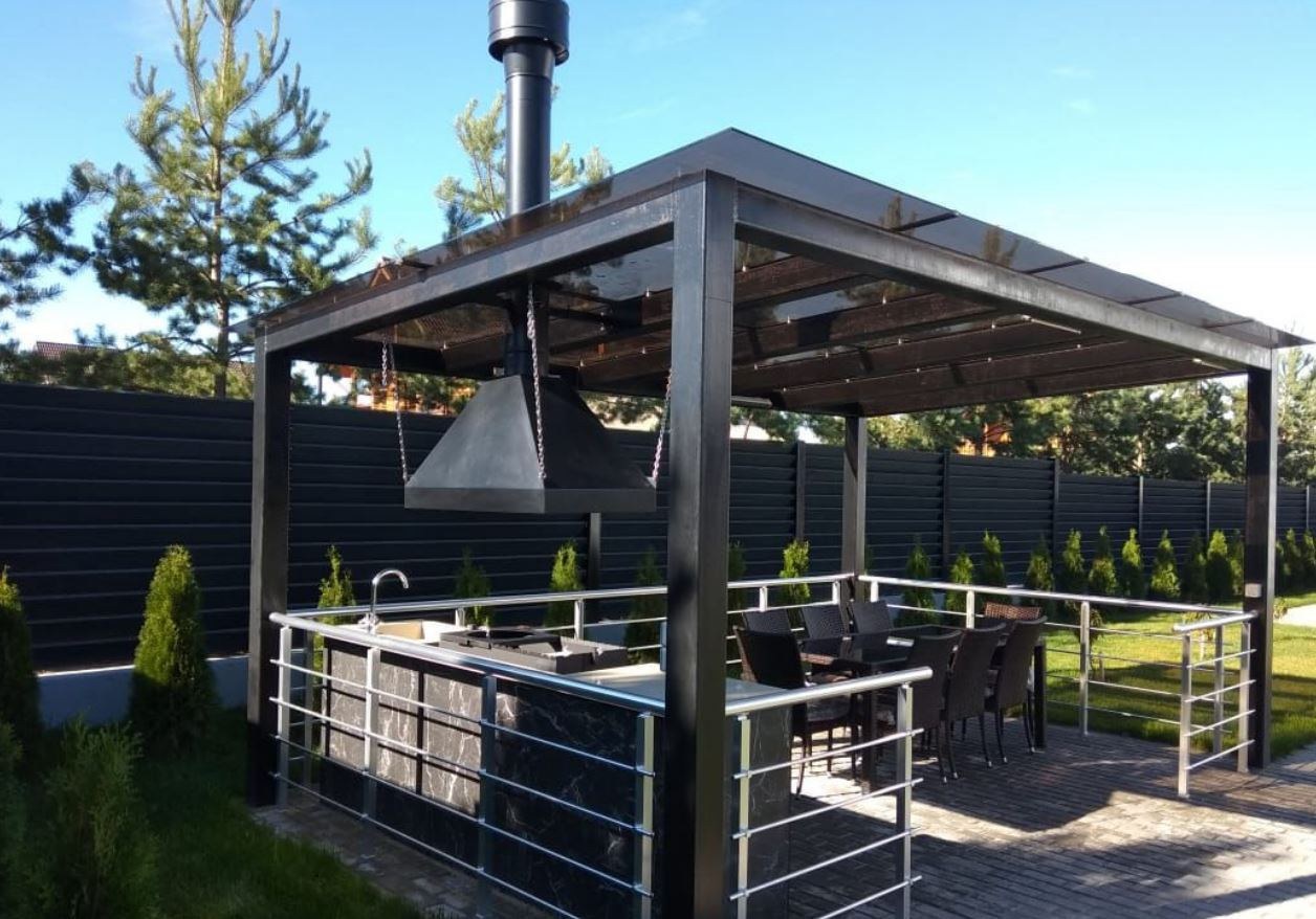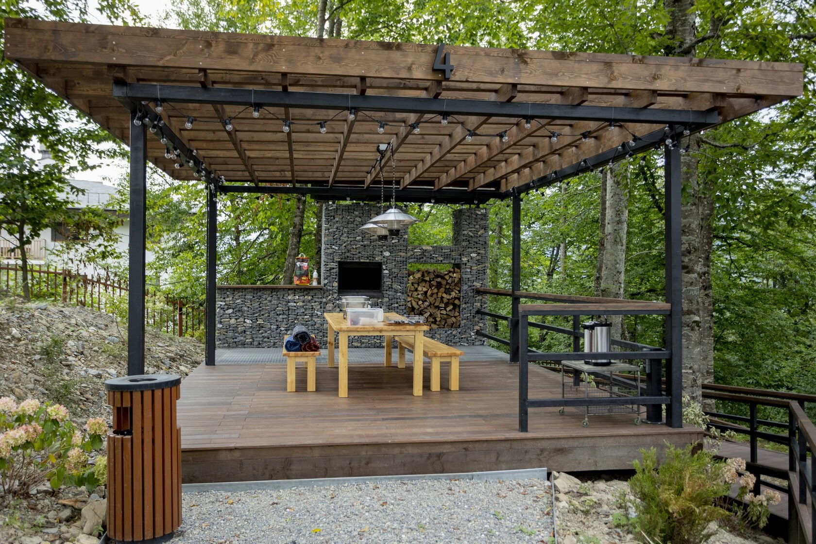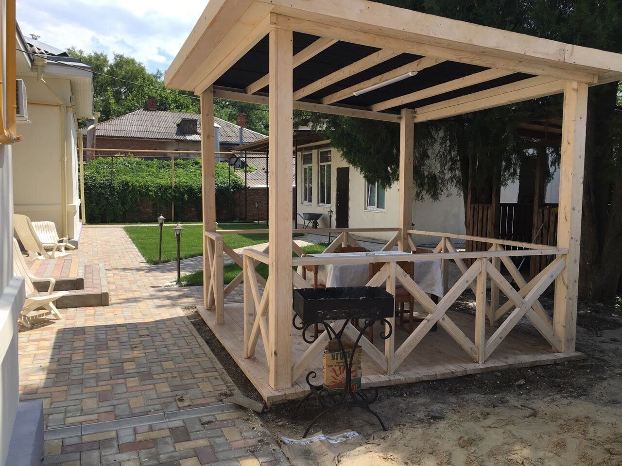 Деревянная беседка с мангальной зоной из металла (76 фото)