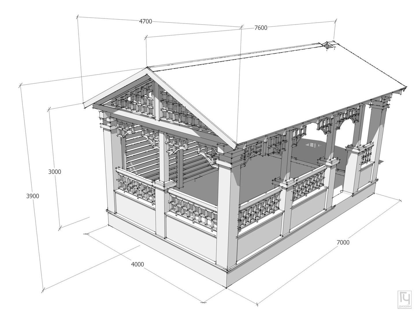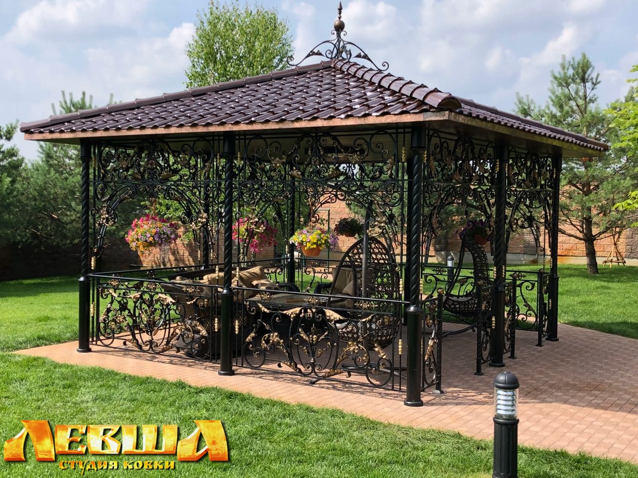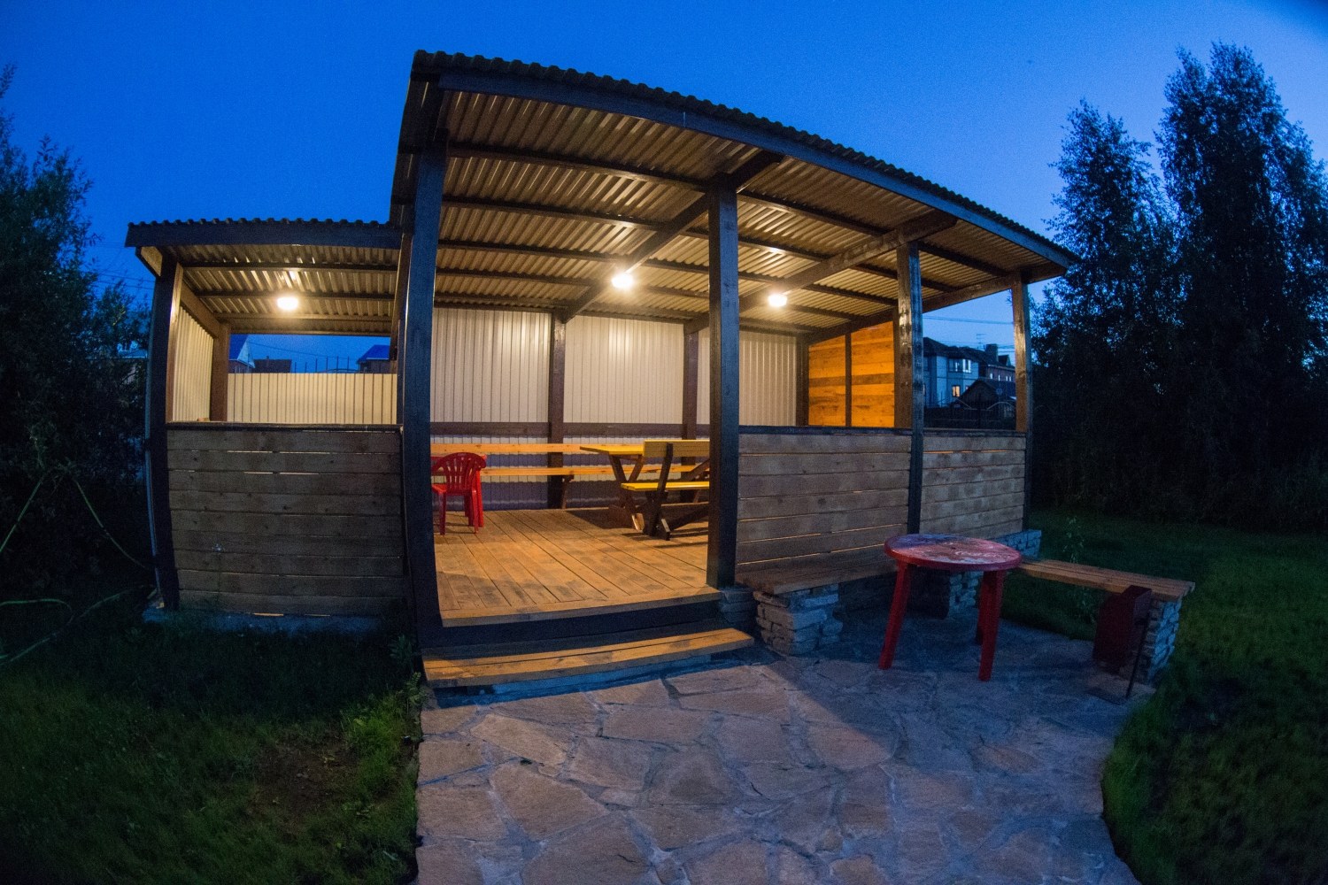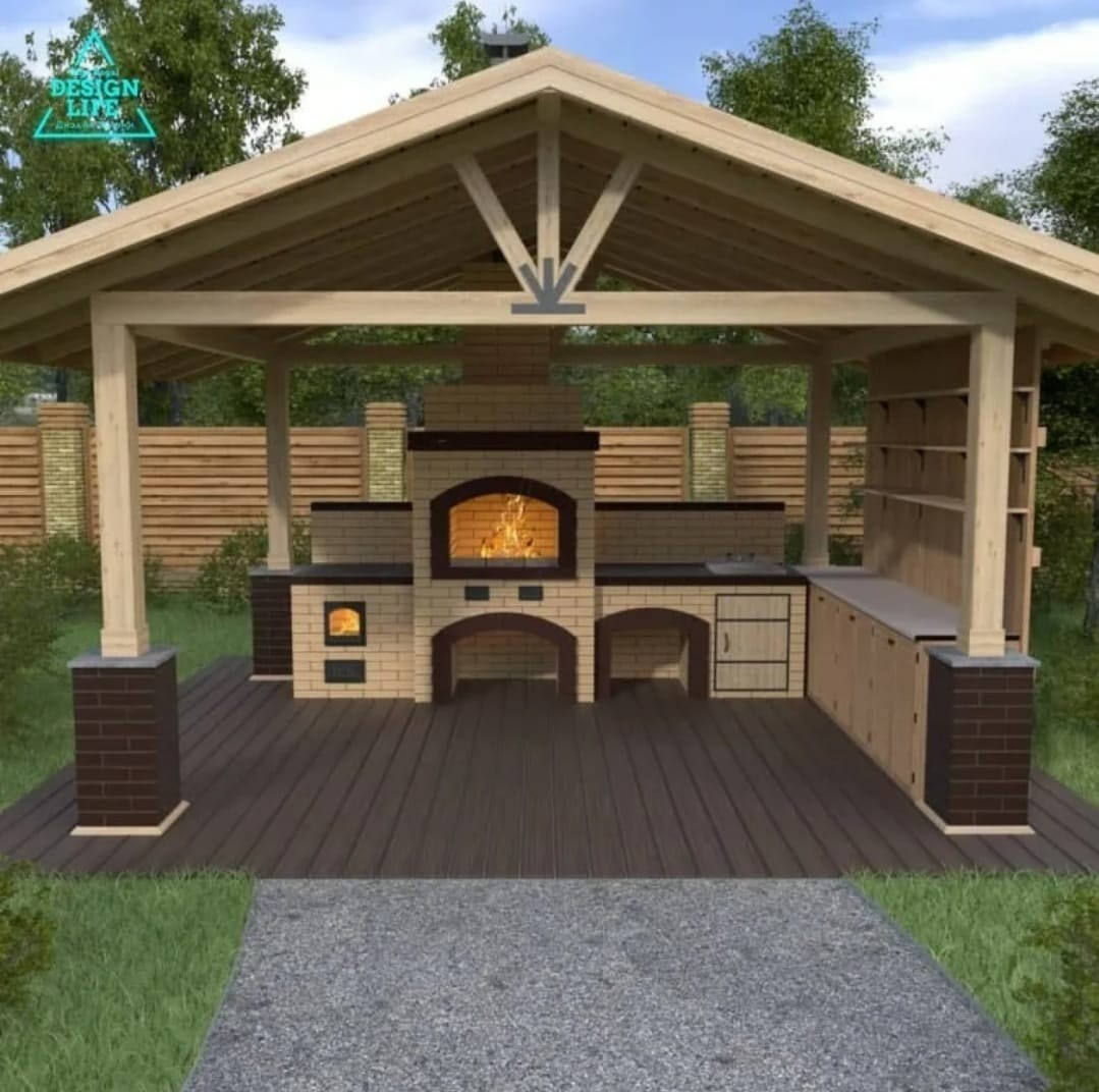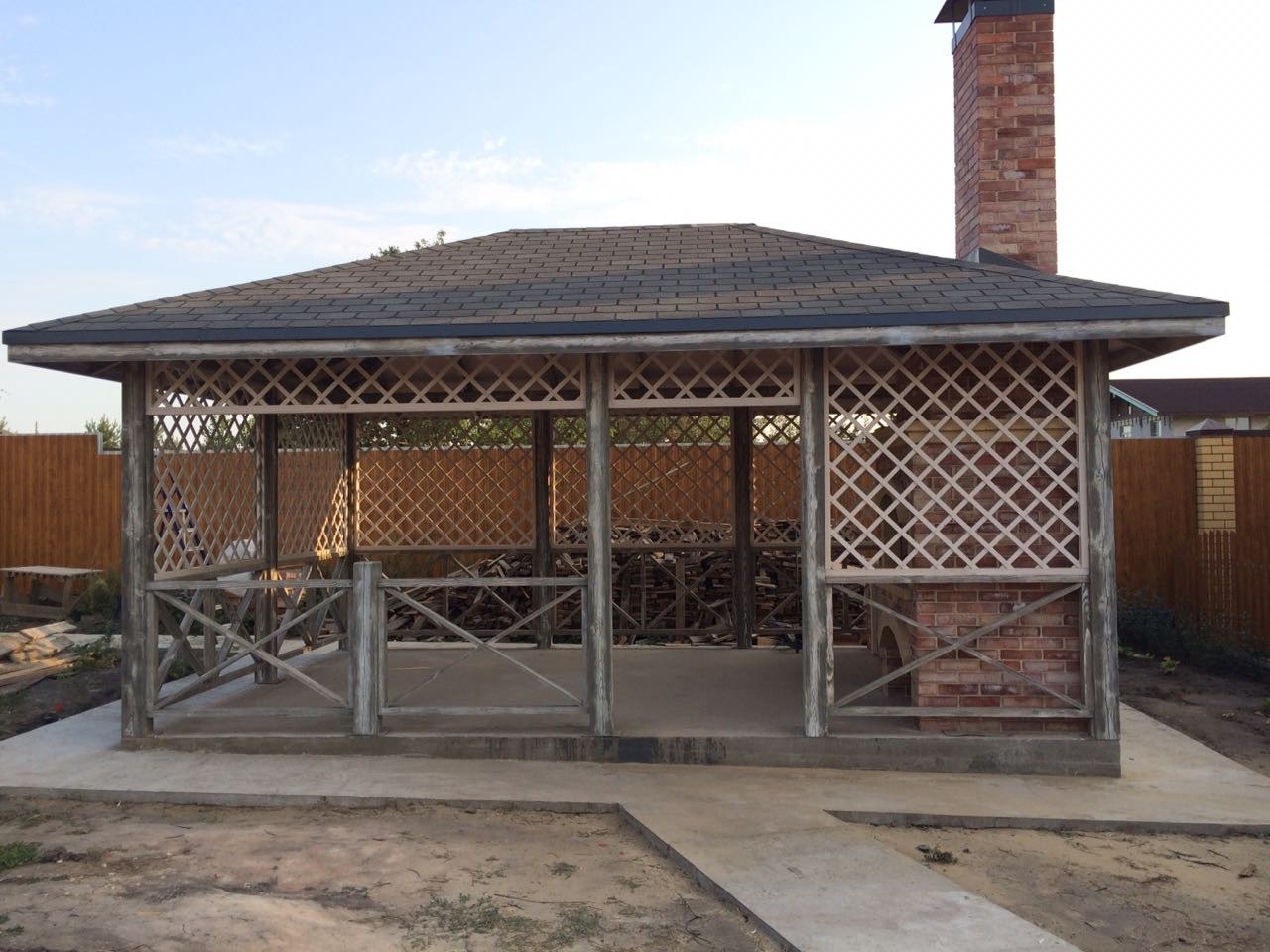Деревянная беседка с мангальной зоной из металла (76 фото)