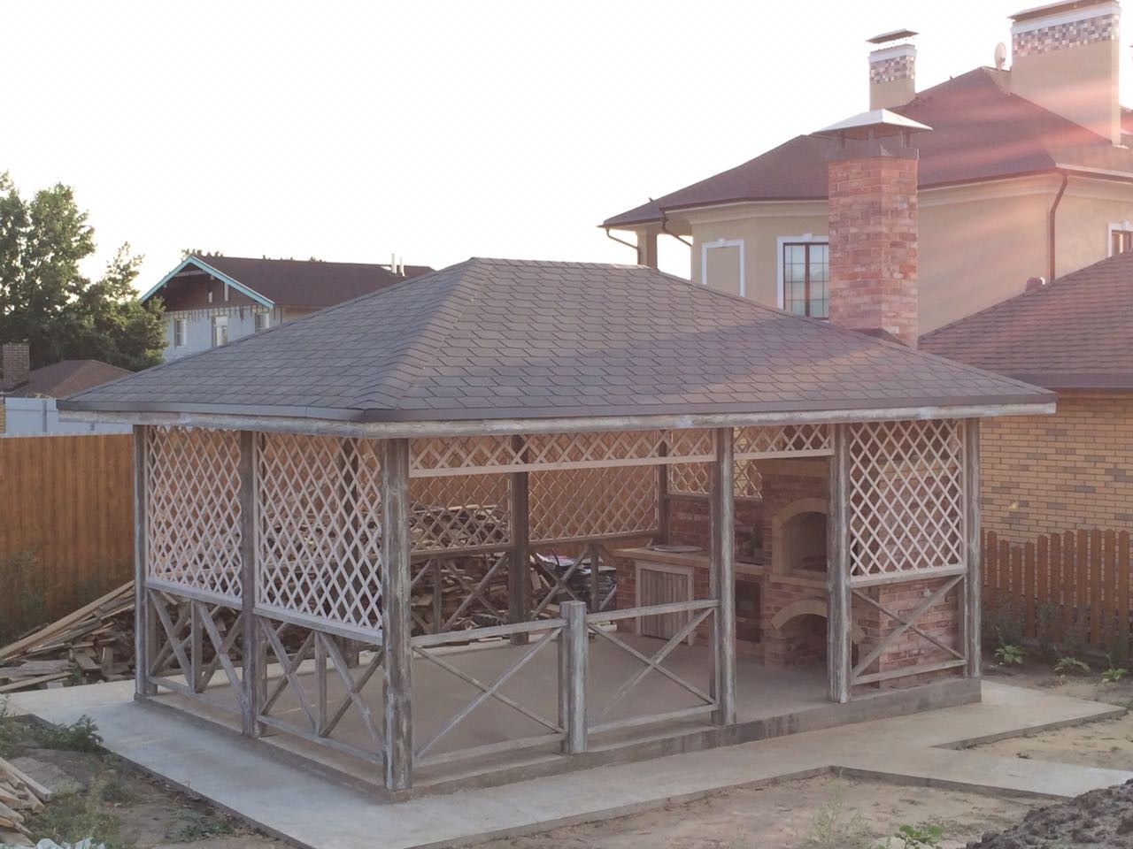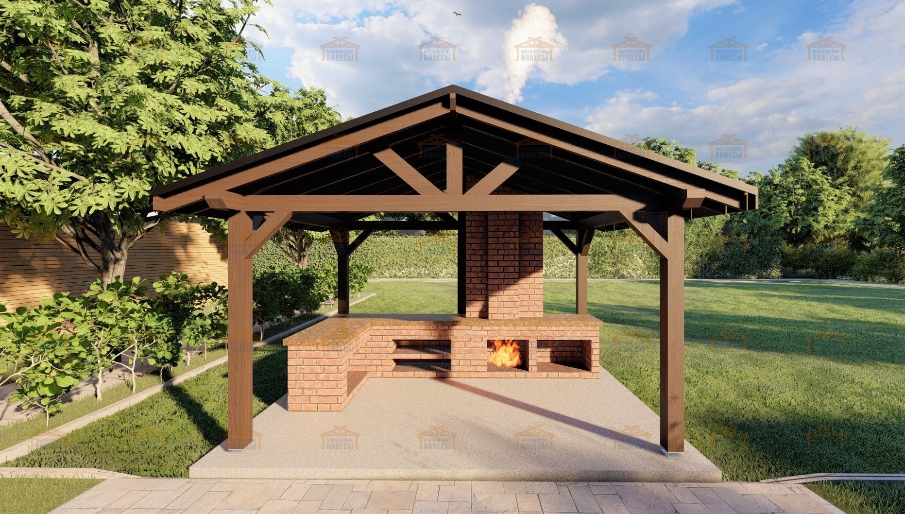 Беседка 3х4 с четырехскатной крышей с мангалом