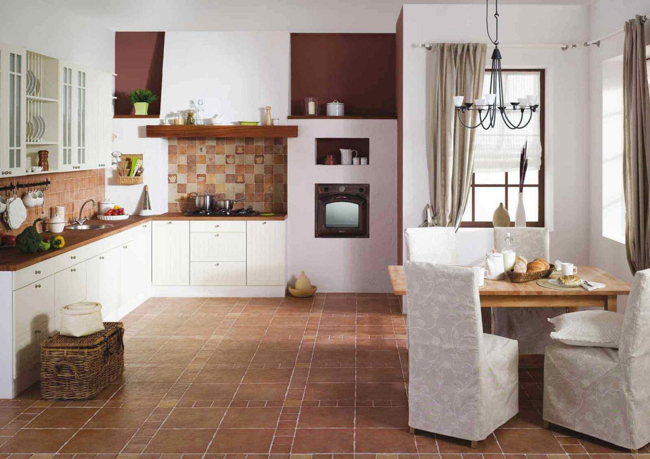 Коричневая плитка на полу кухни с чем сочетается (95 фото)