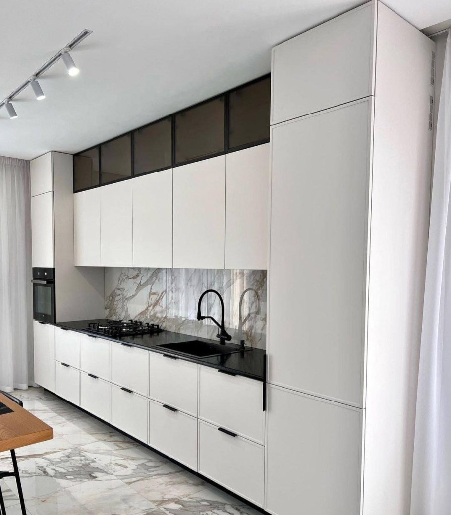 Прямая кухня с антресольными шкафами размеры (95 фото)