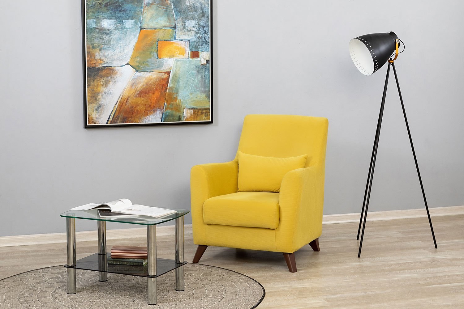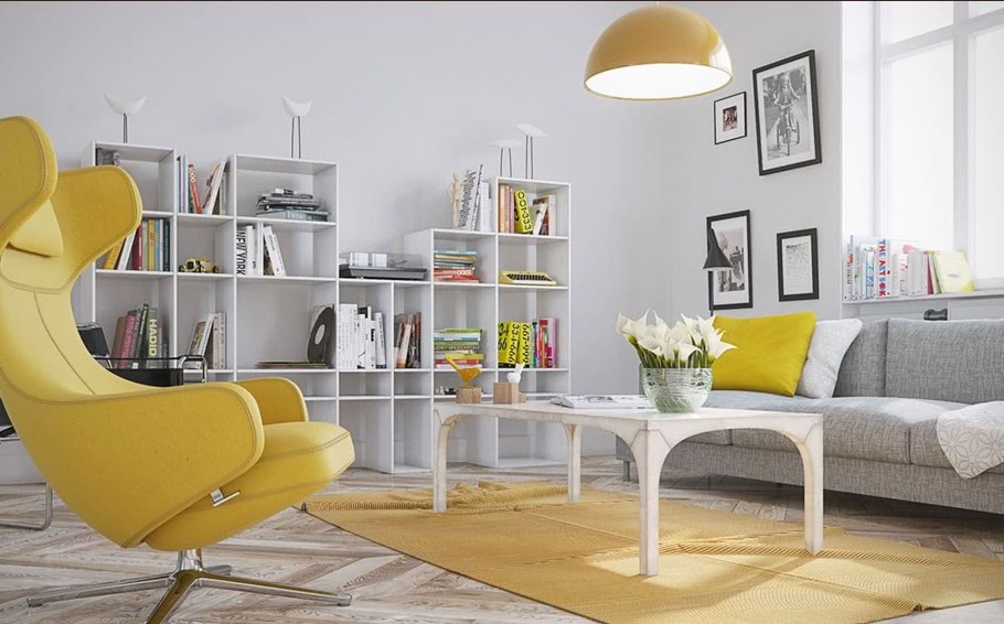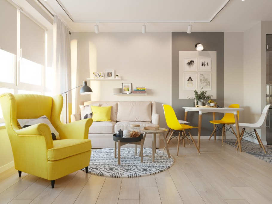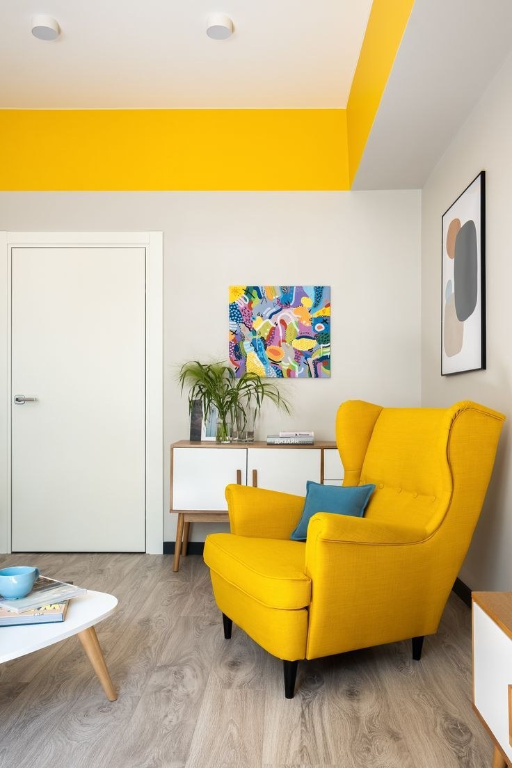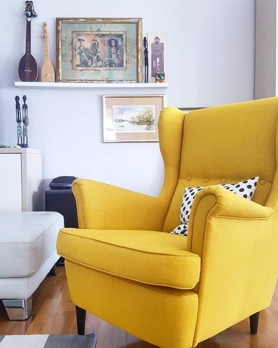 Жёлтое кресло икеа в интерьере гостиной