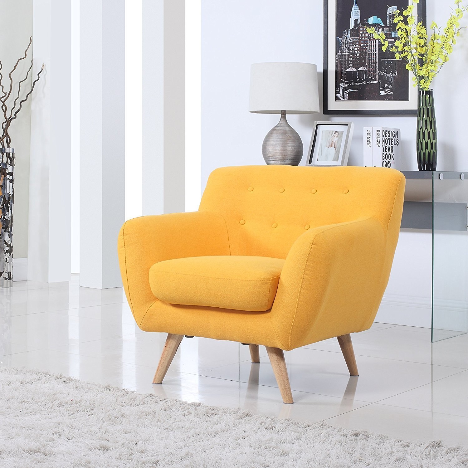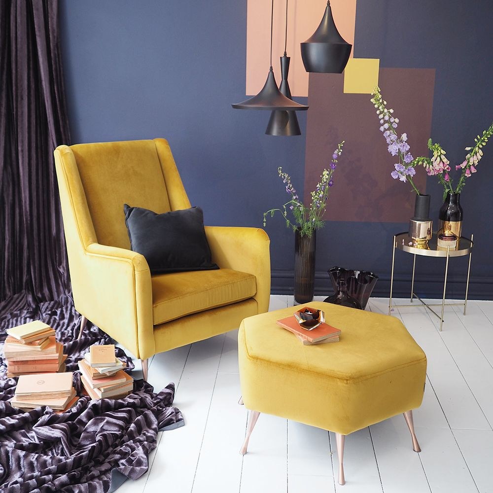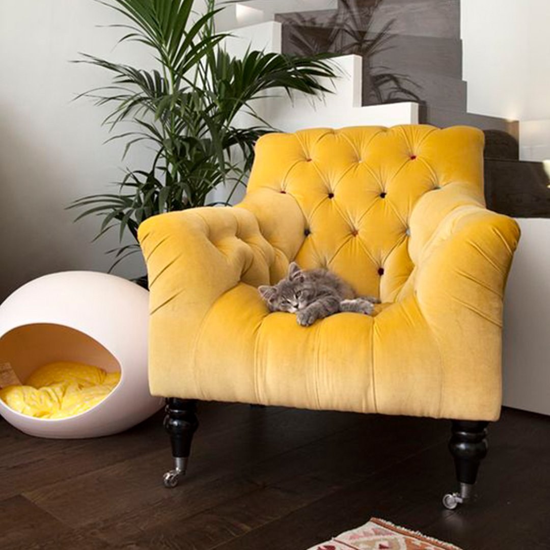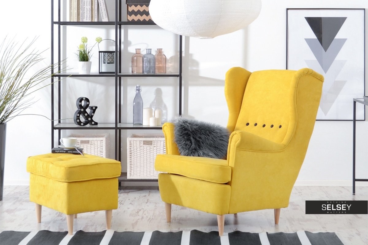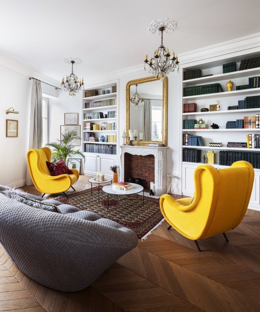 Желтое кресло в интерьере (91 фото)