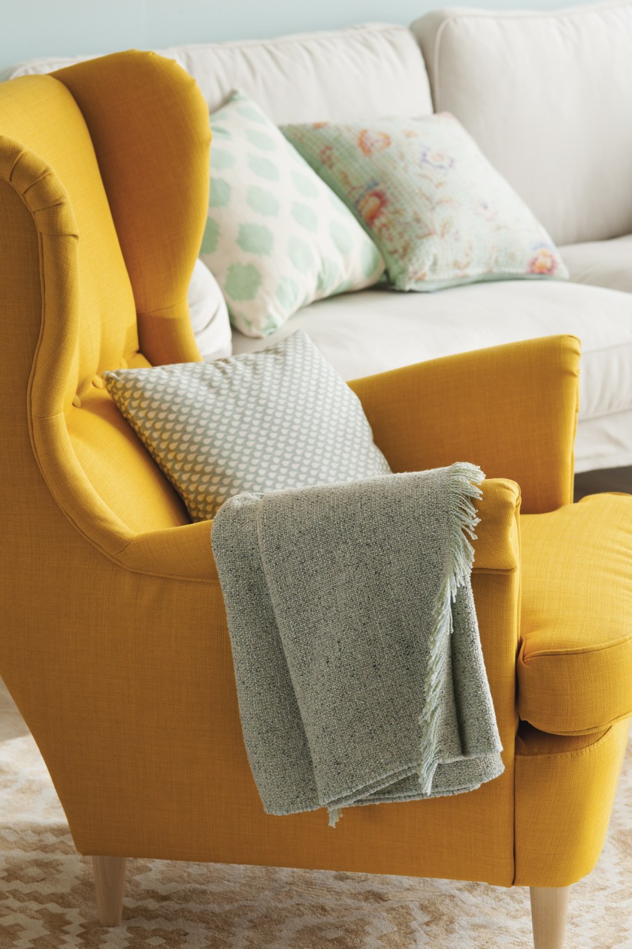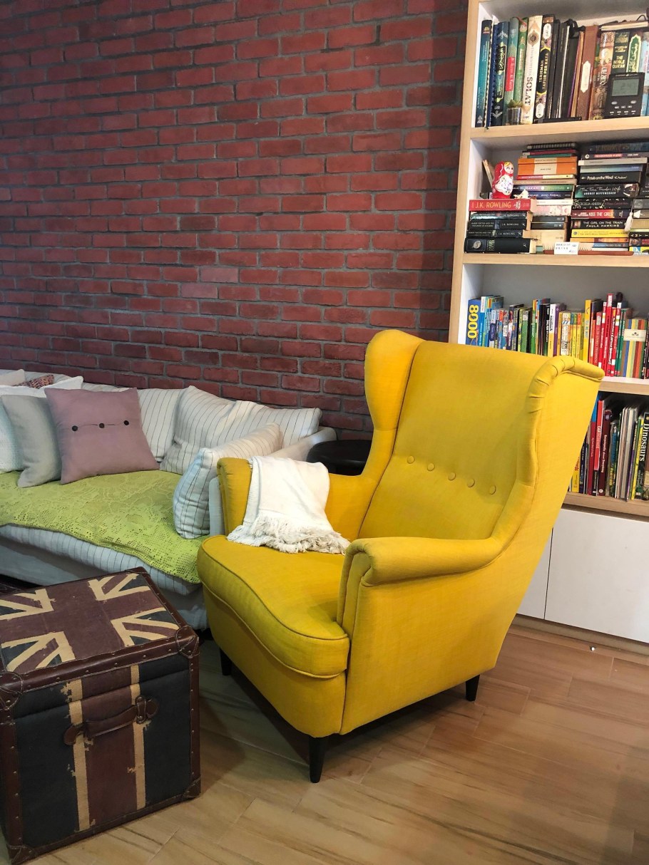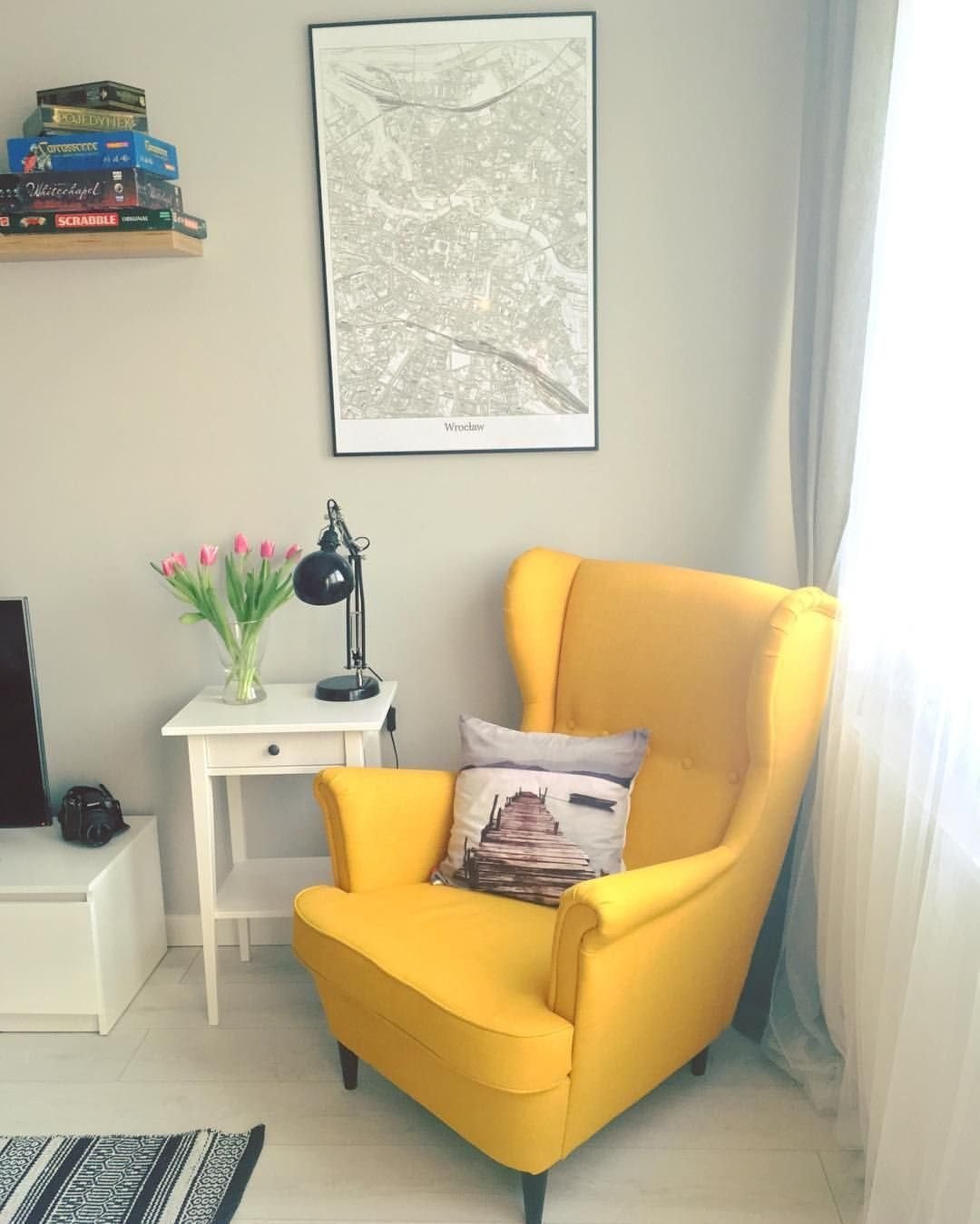 Желтое кресло икеа в интерьере