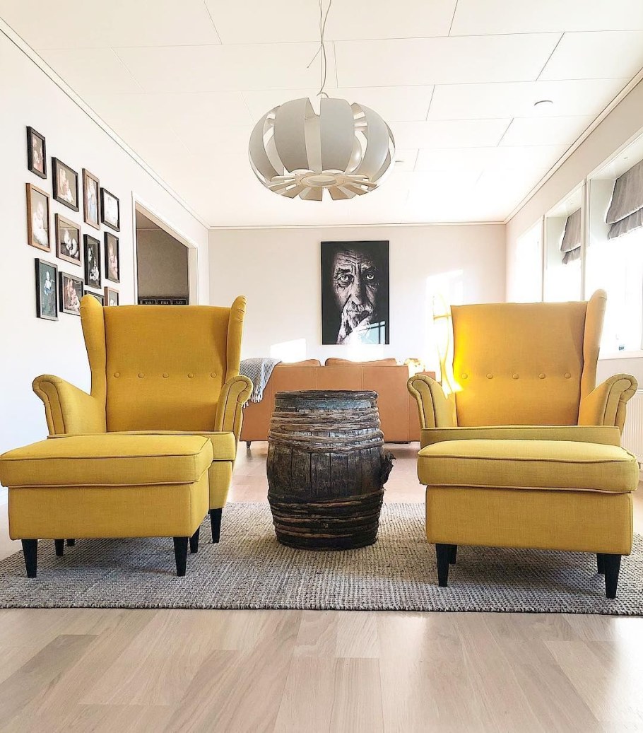 Кресло СТРАНДМОН икеа желтое в интерьере