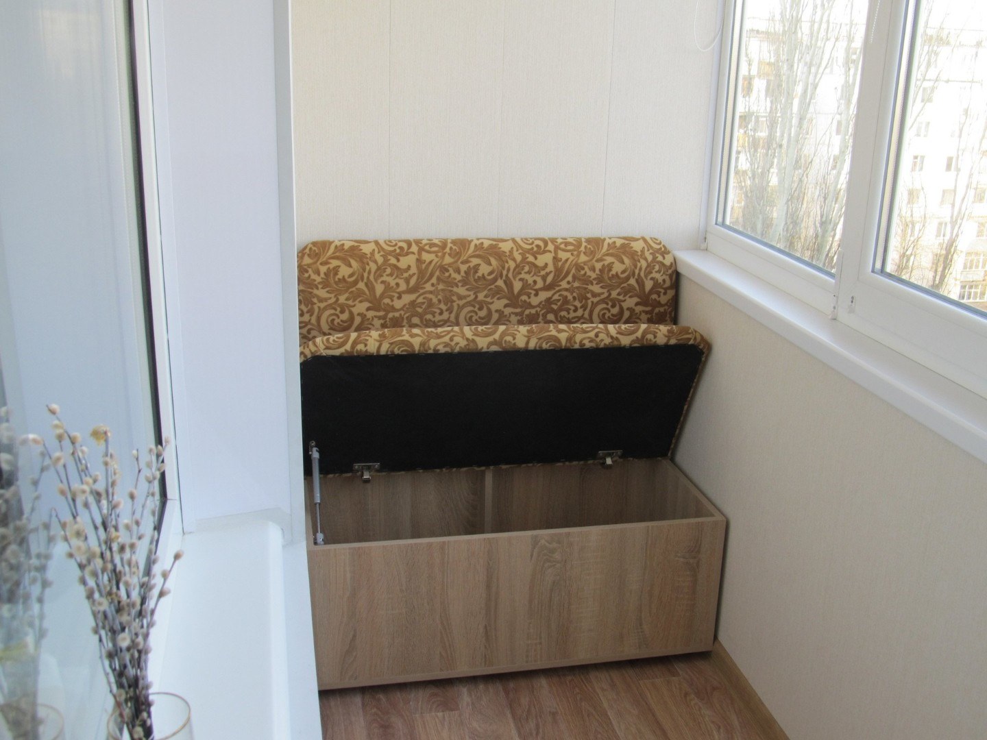 Диванчик с местом для хранения на балконе