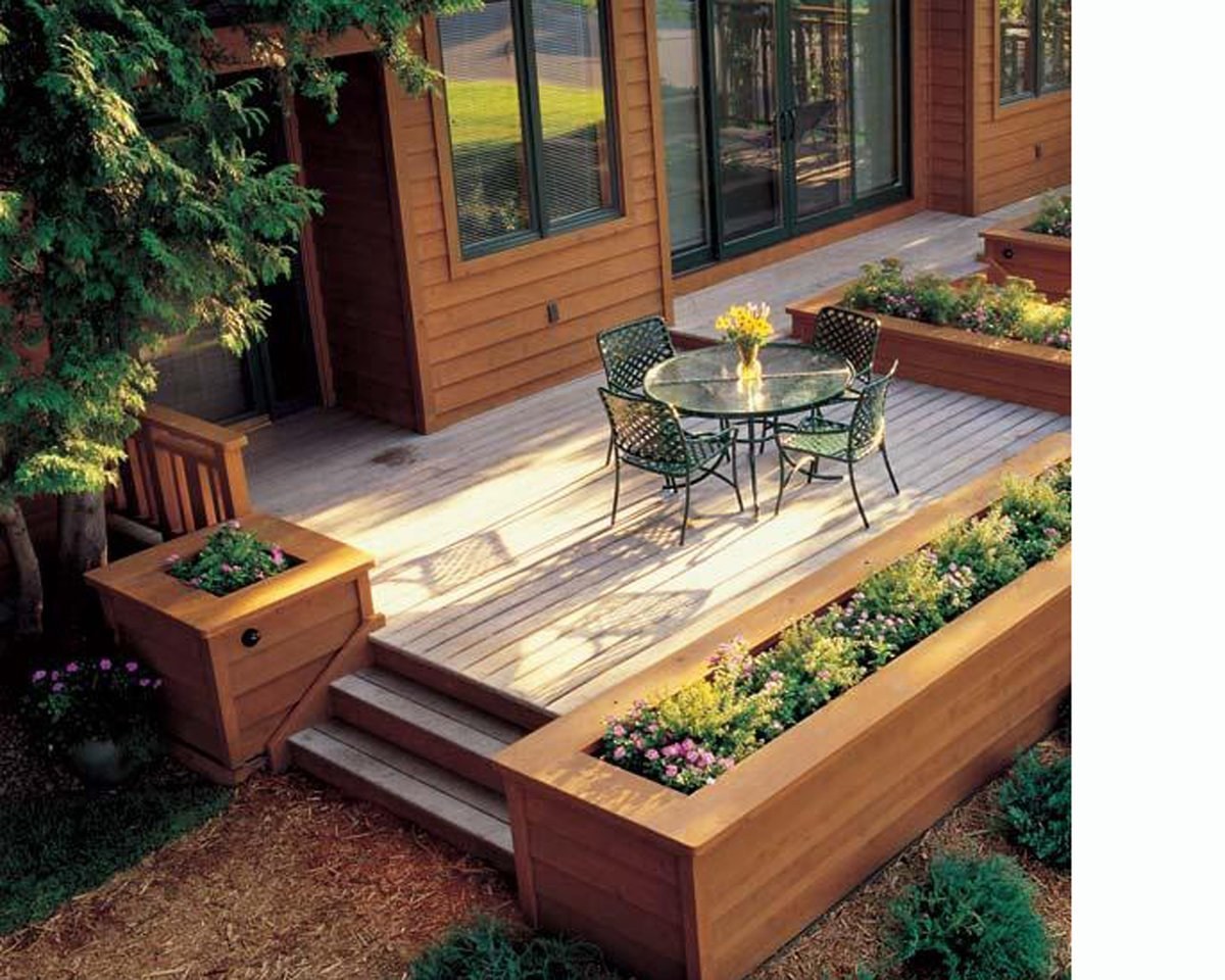 Клумбы вокруг патио
