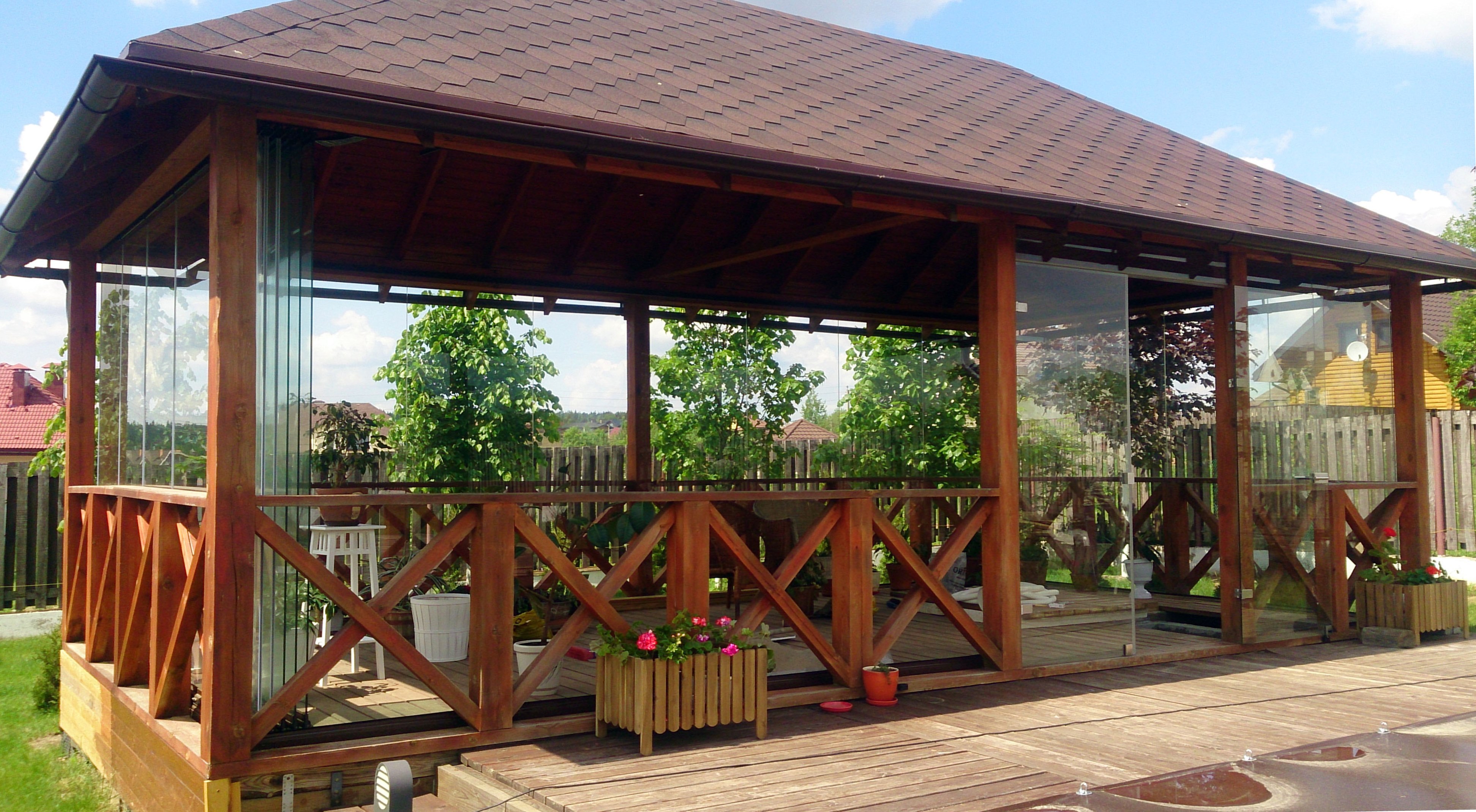 Безрамное остекление беседок и веранд