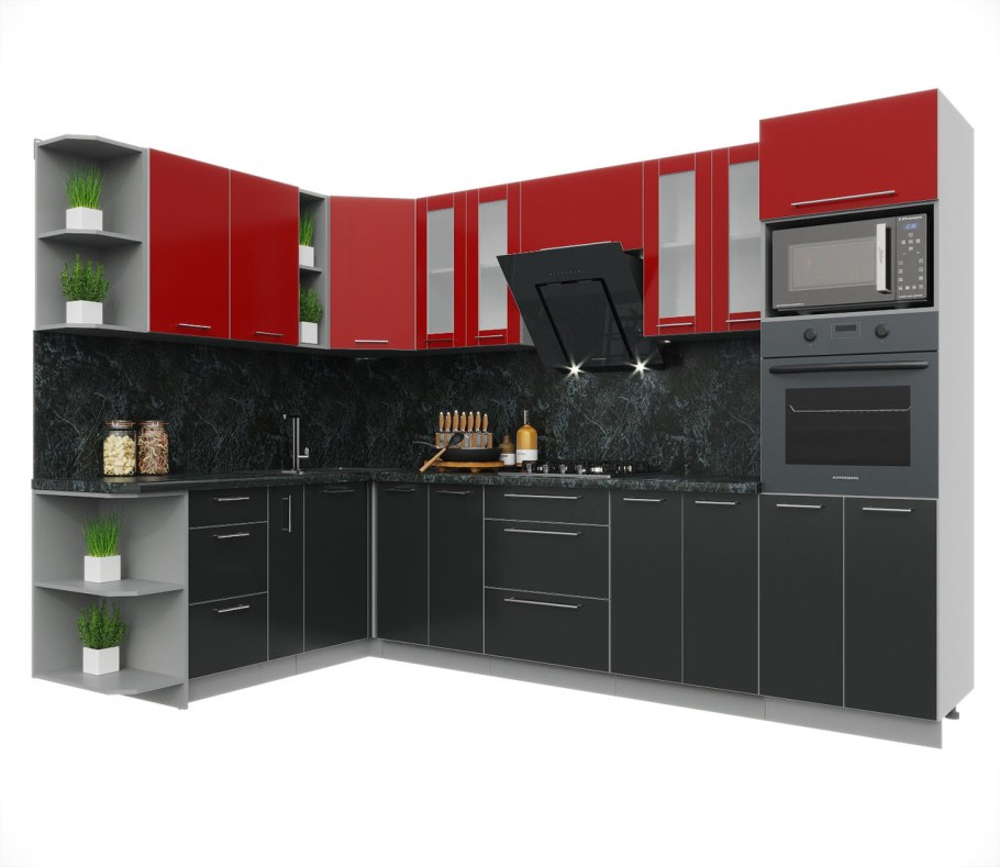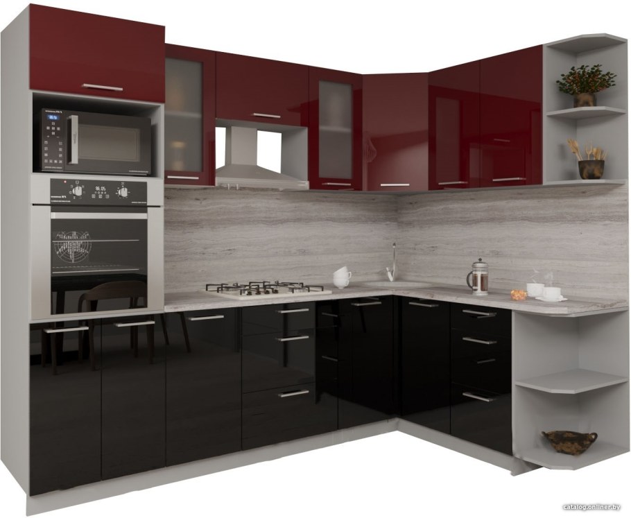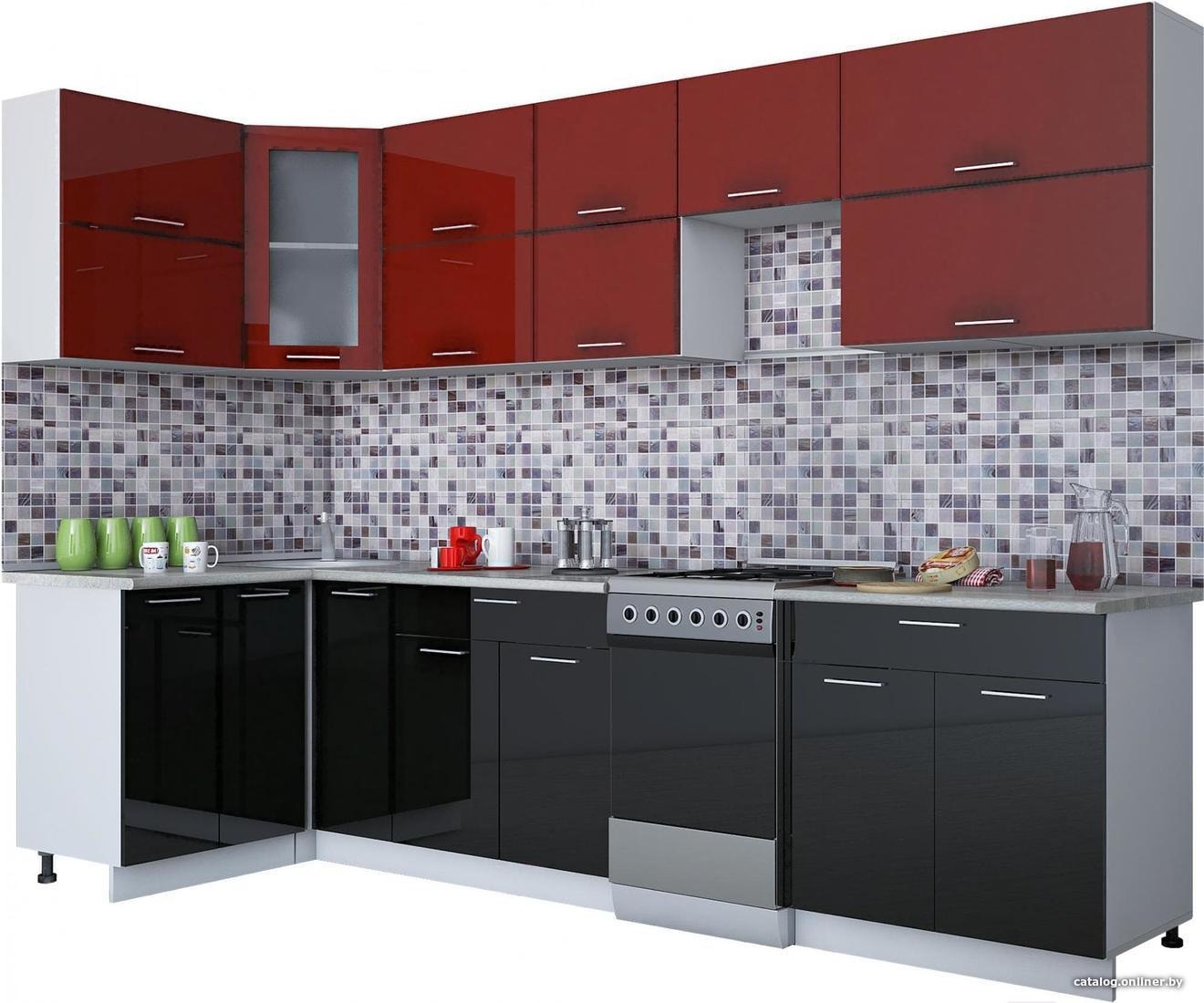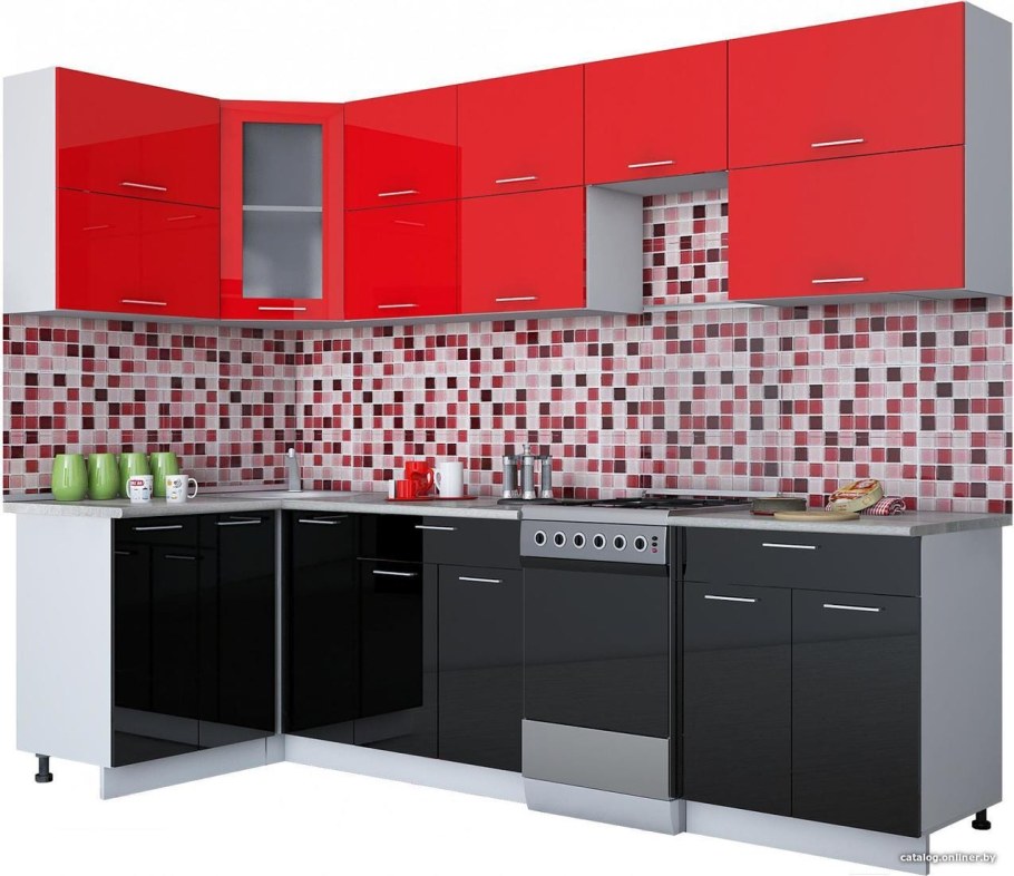 Кухни глянец черно красный цвет мини