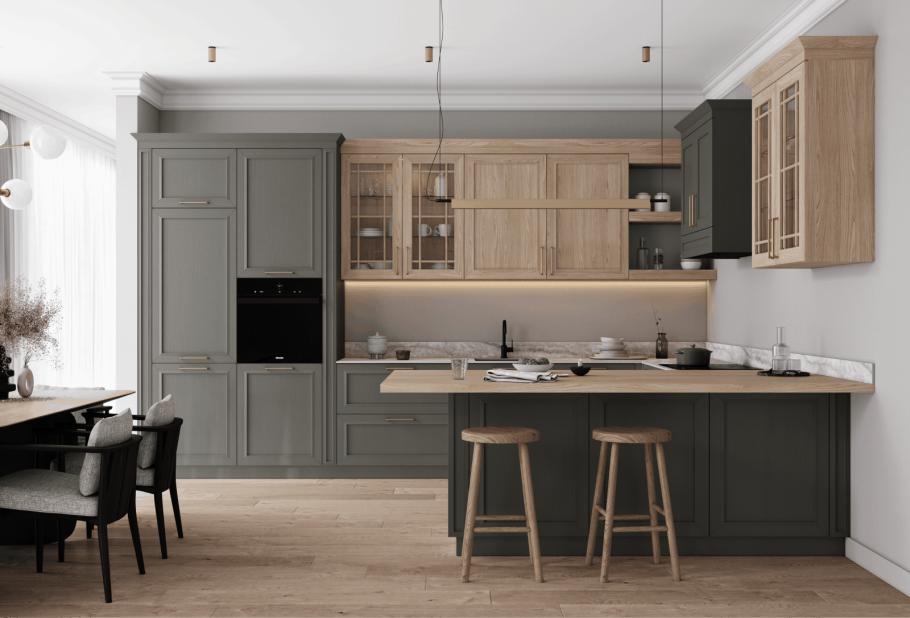 Кухня зов цвет фасада светло серый ясень (95 фото)