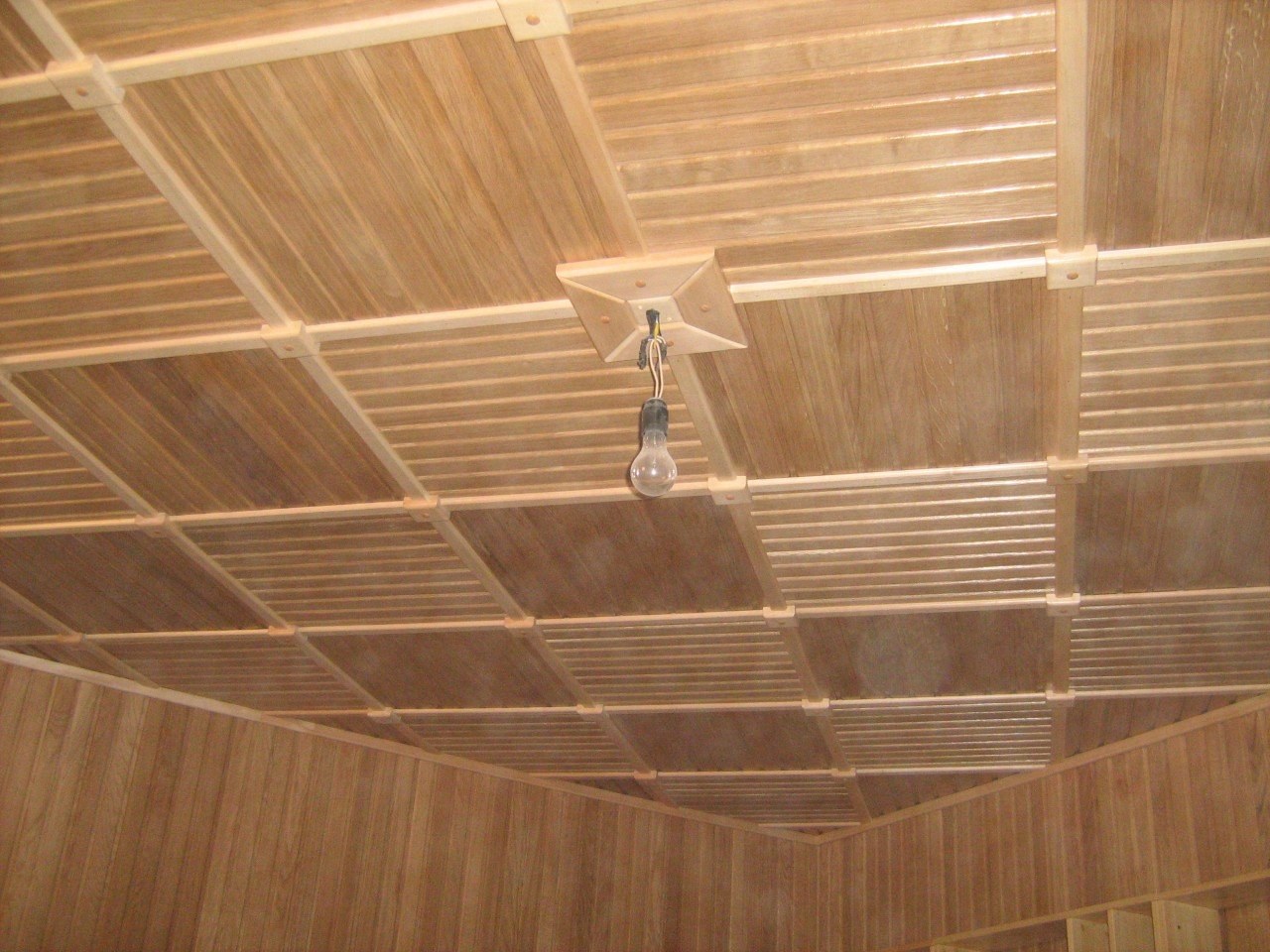 Потолок из деревянной вагонки