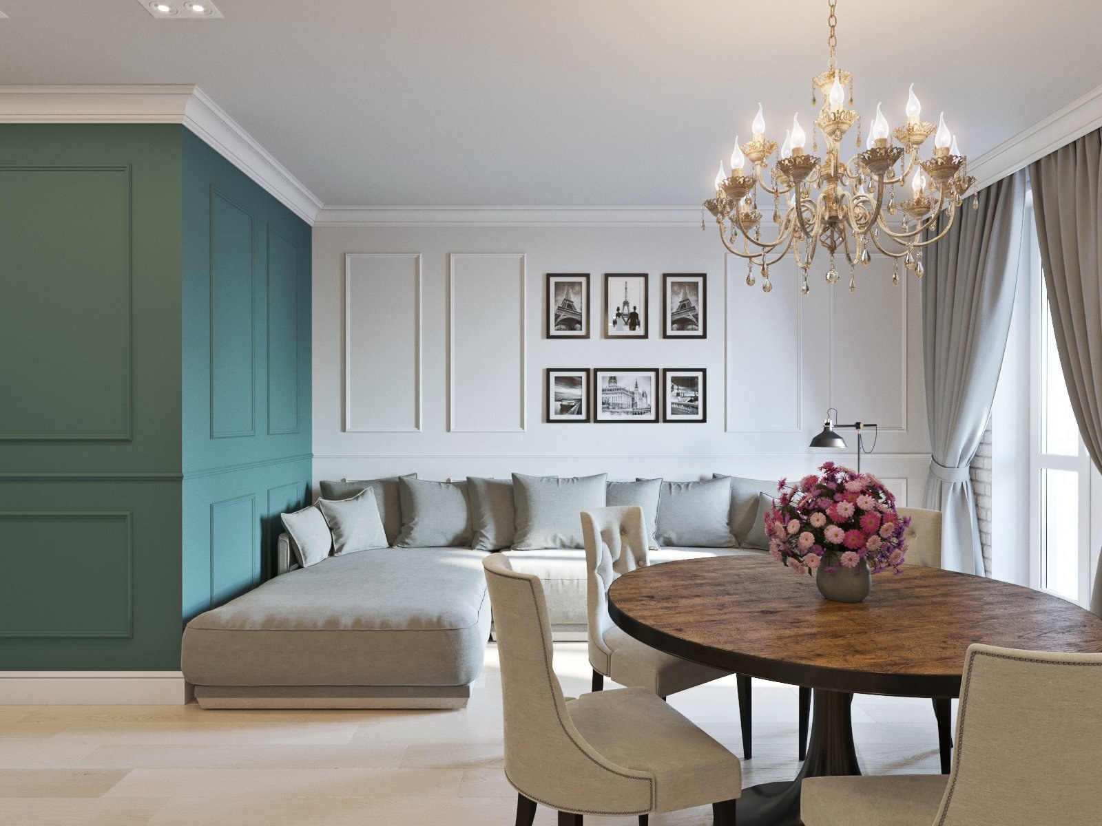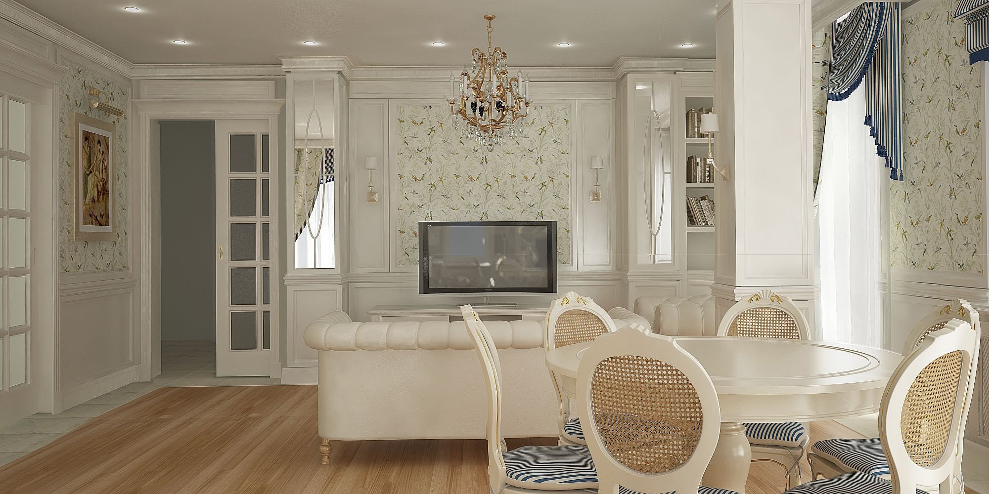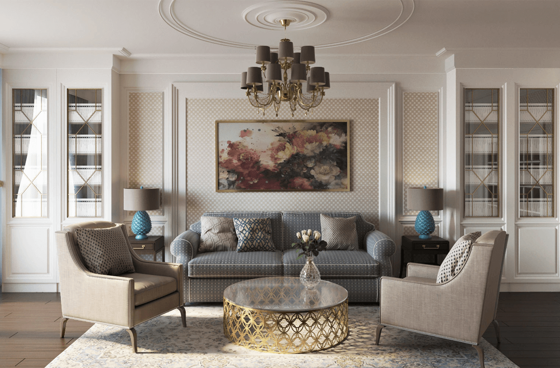 Линкруста в интерьере гостиной в стиле Неоклассика