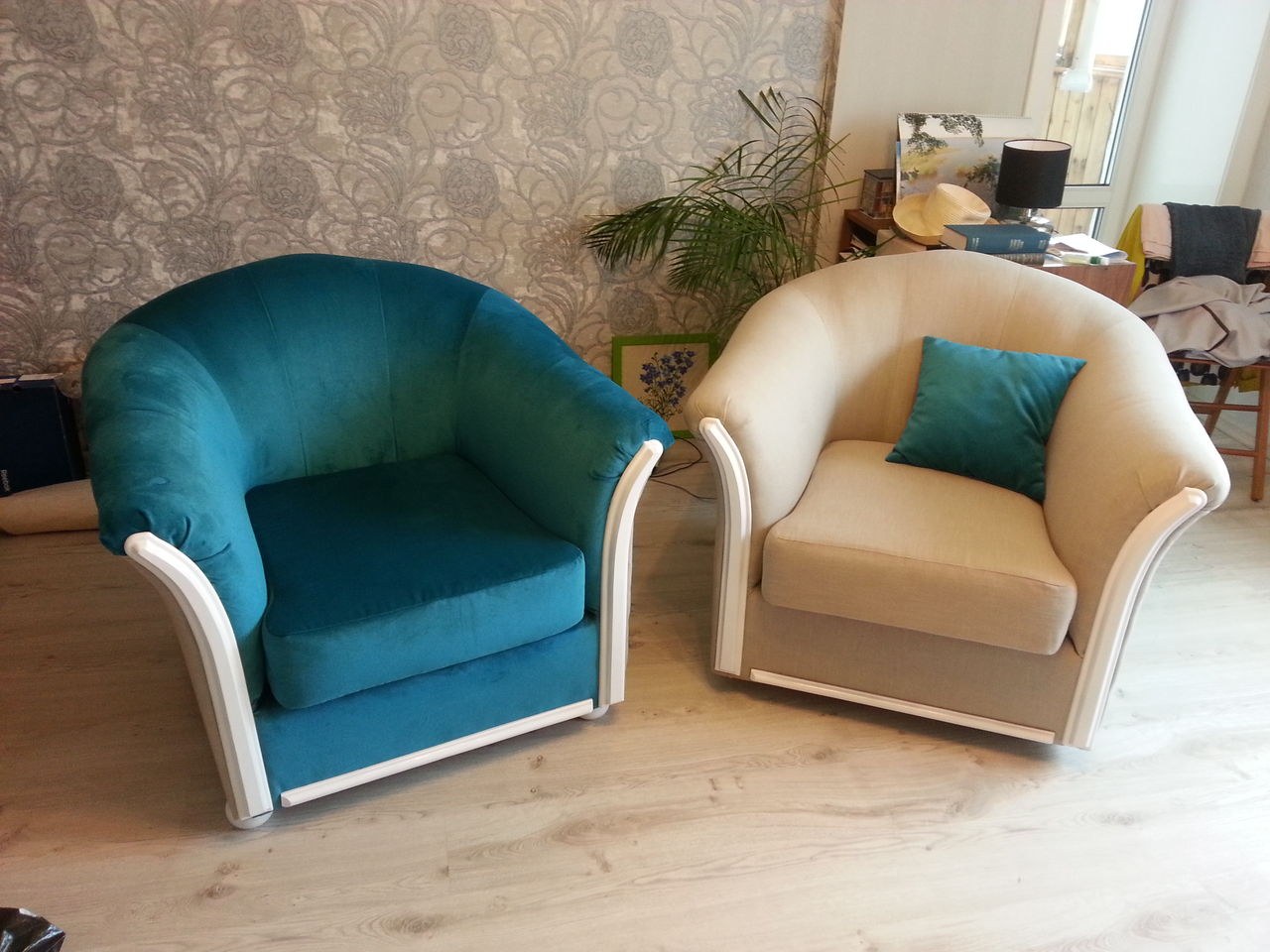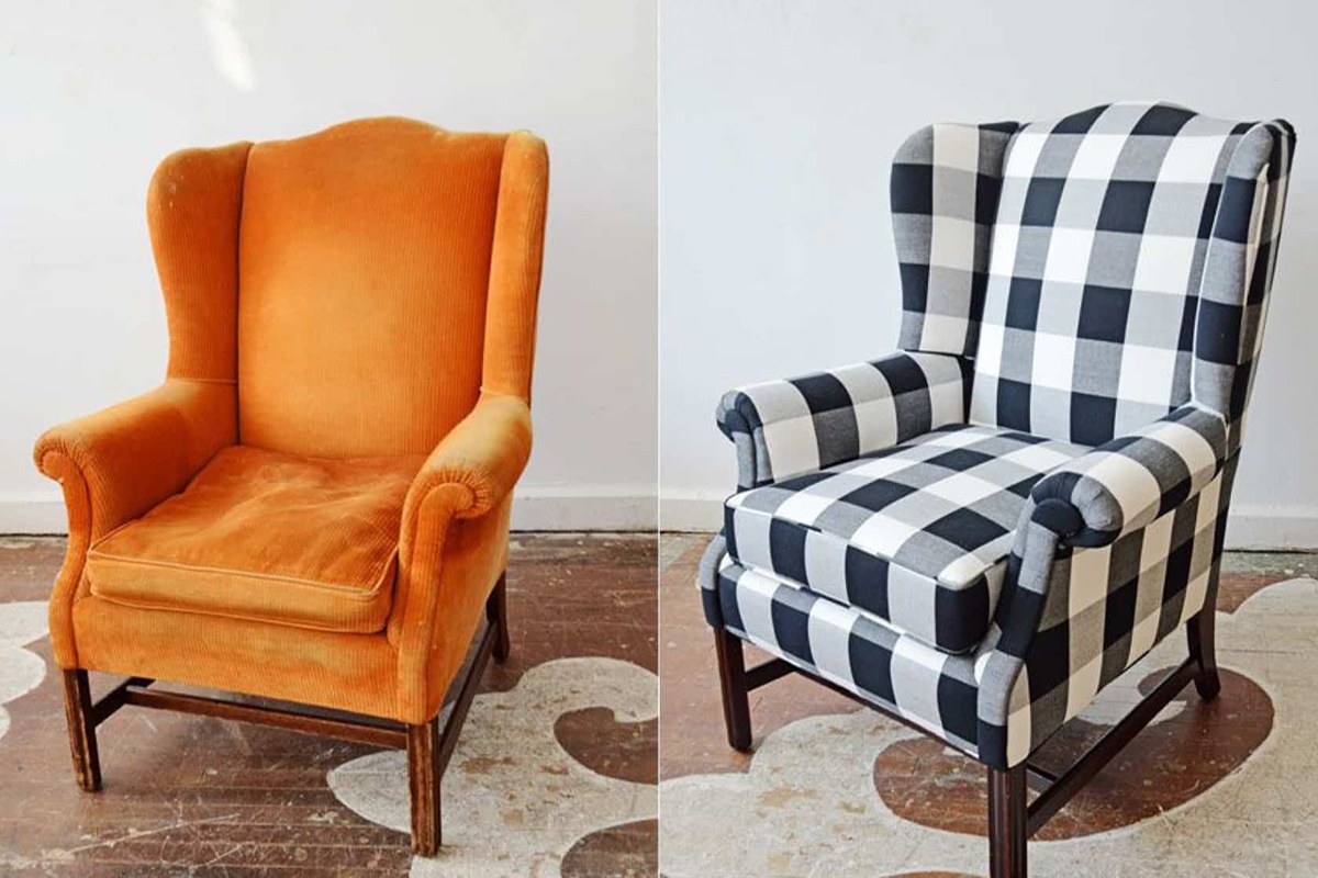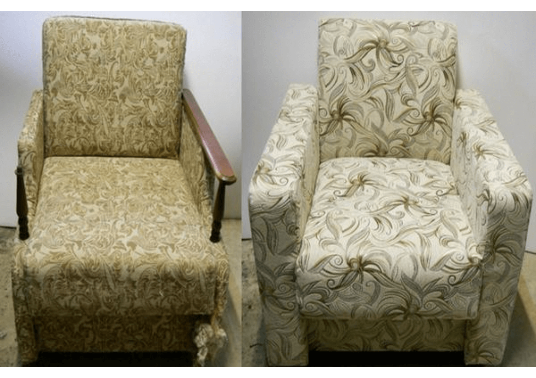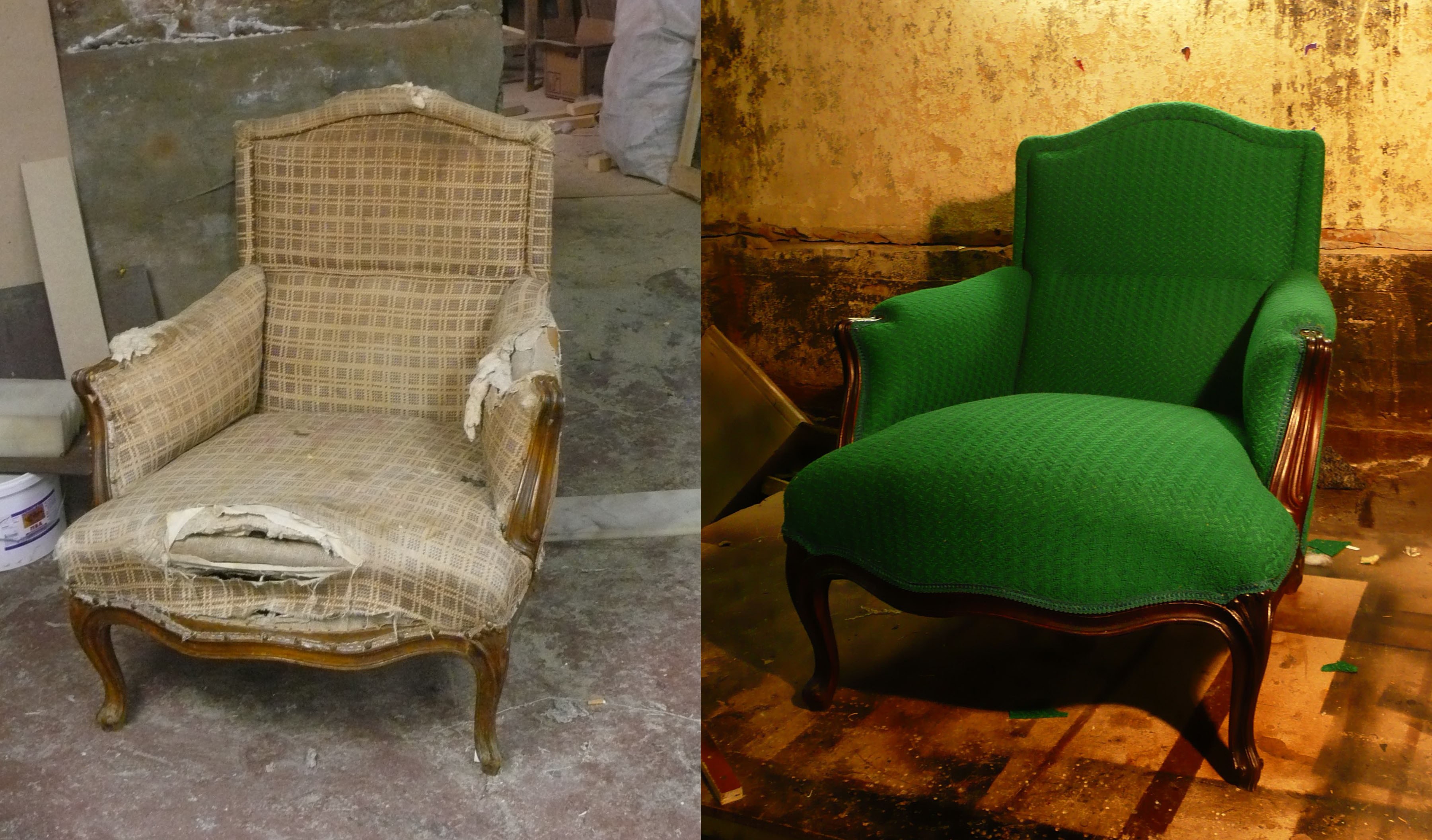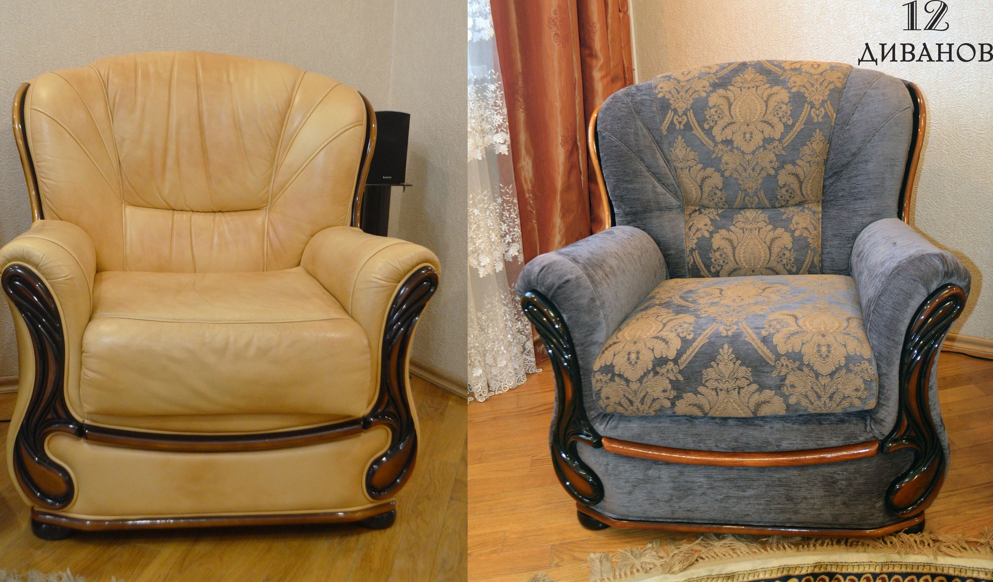 Перетяжка кресла до и после