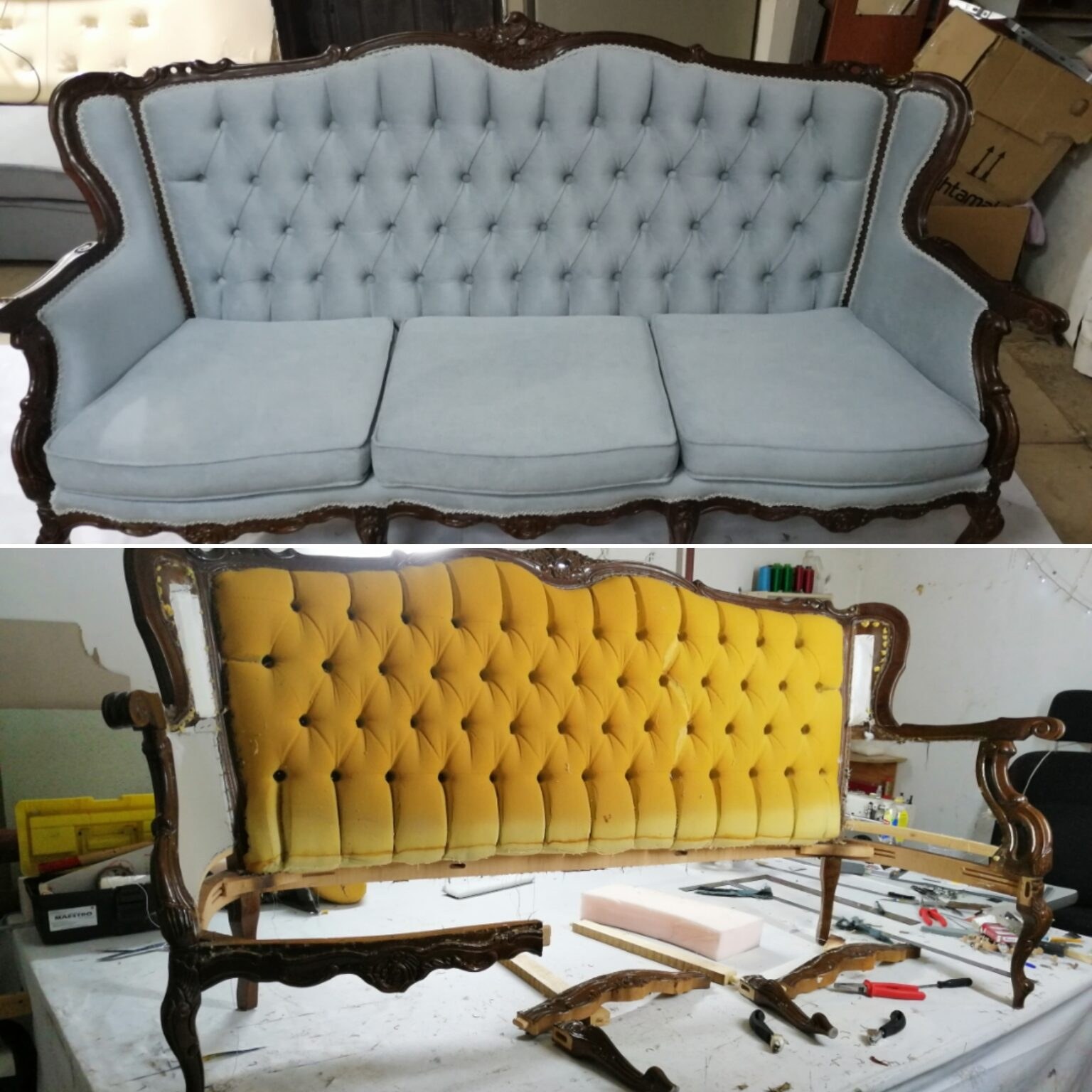 Обивка мебели до после
