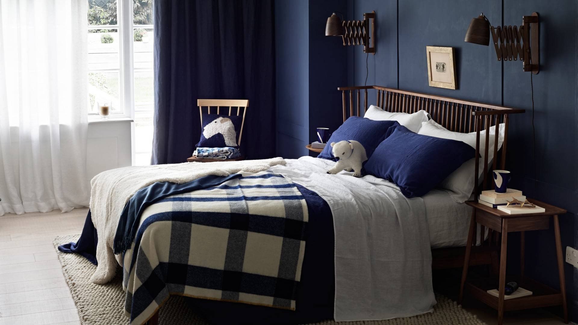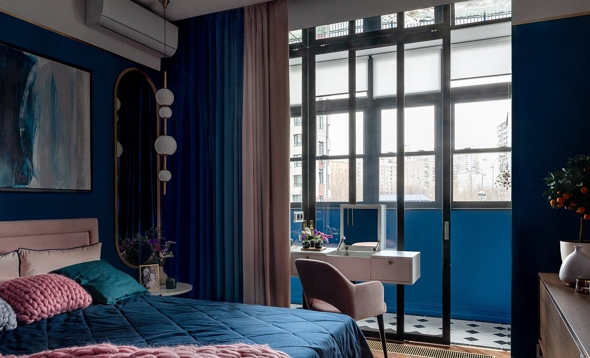 Синие стены в спальне
