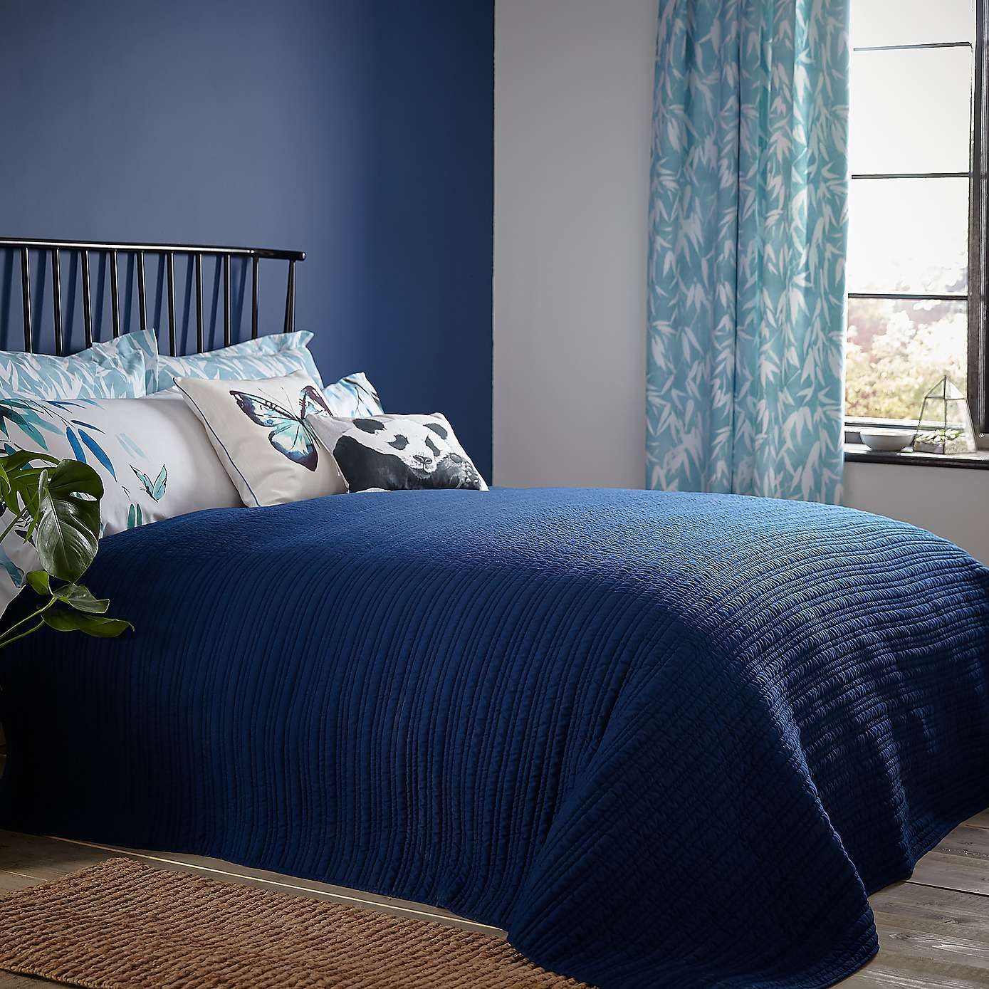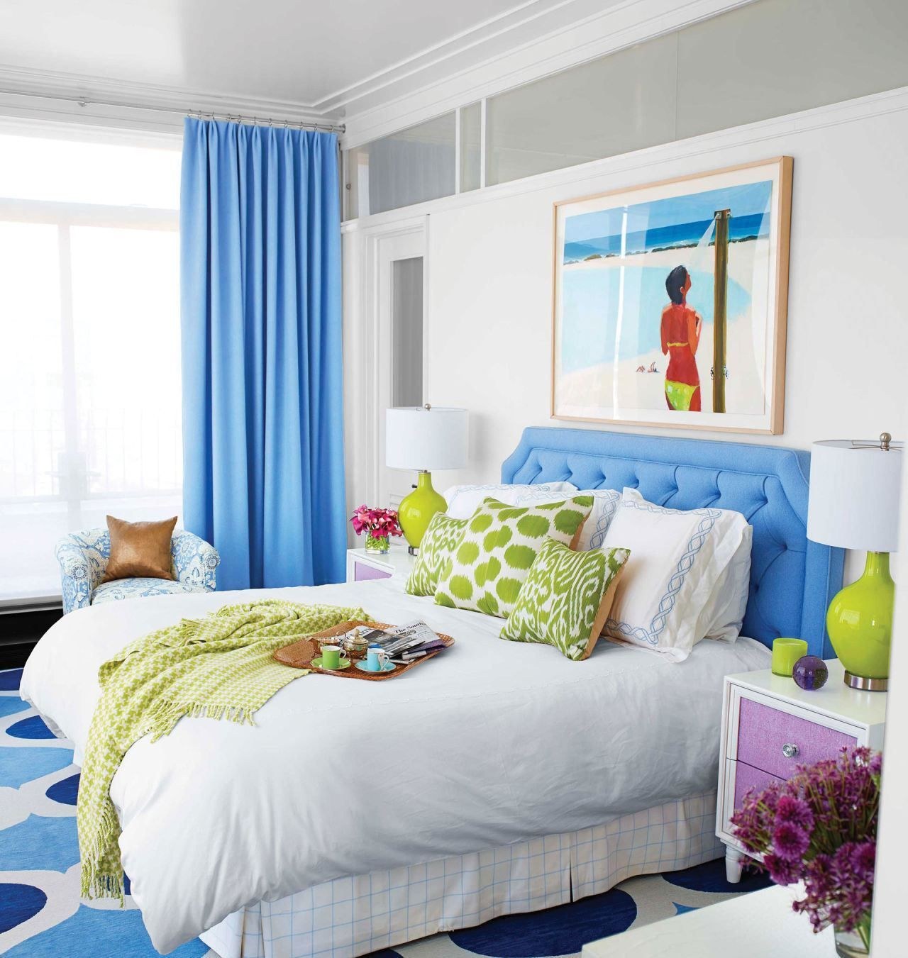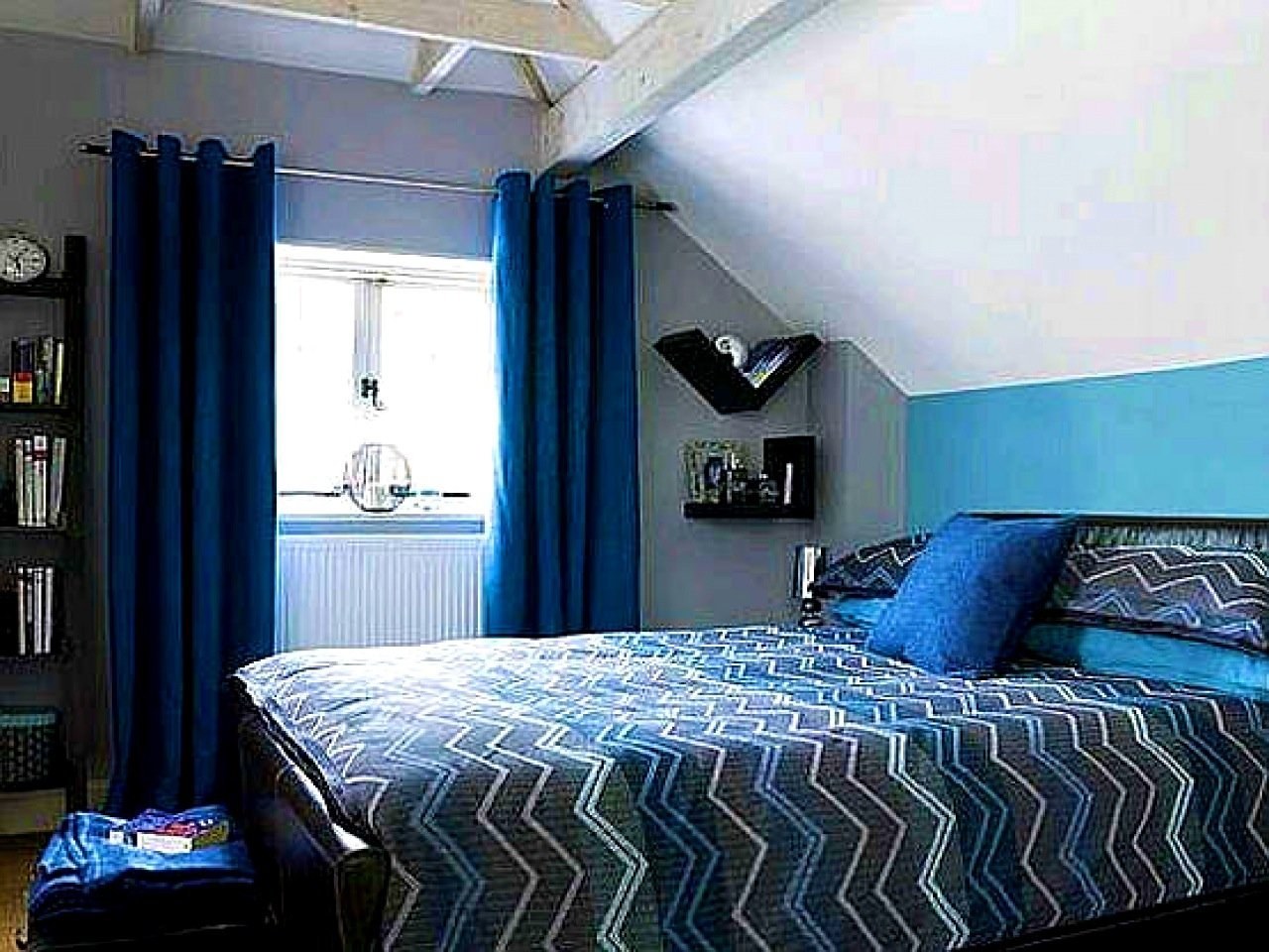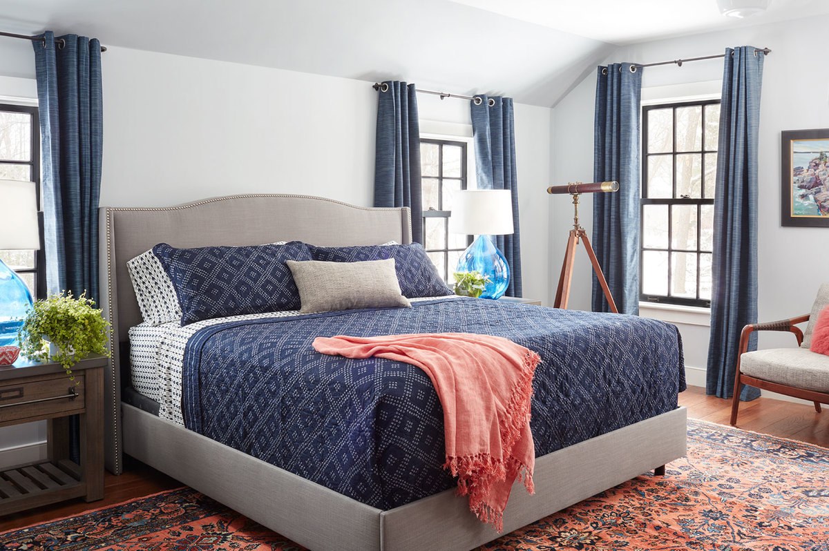 Синяя кровать в спальне