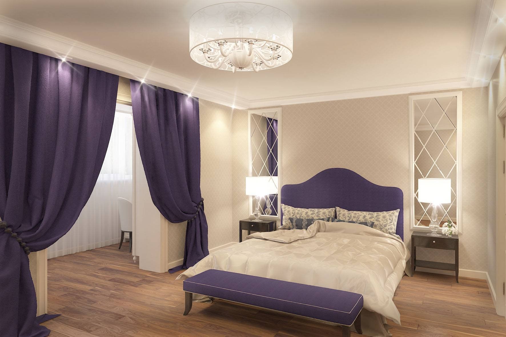 Спальня в бежево фиолетовых тонах