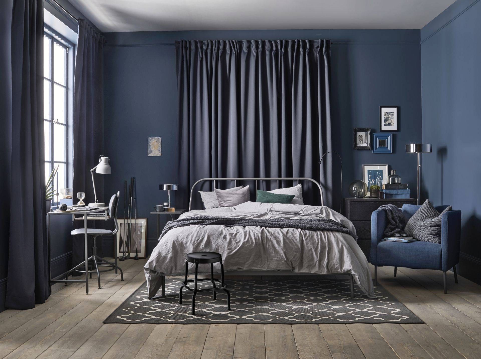 Икеа спальня серо синяя