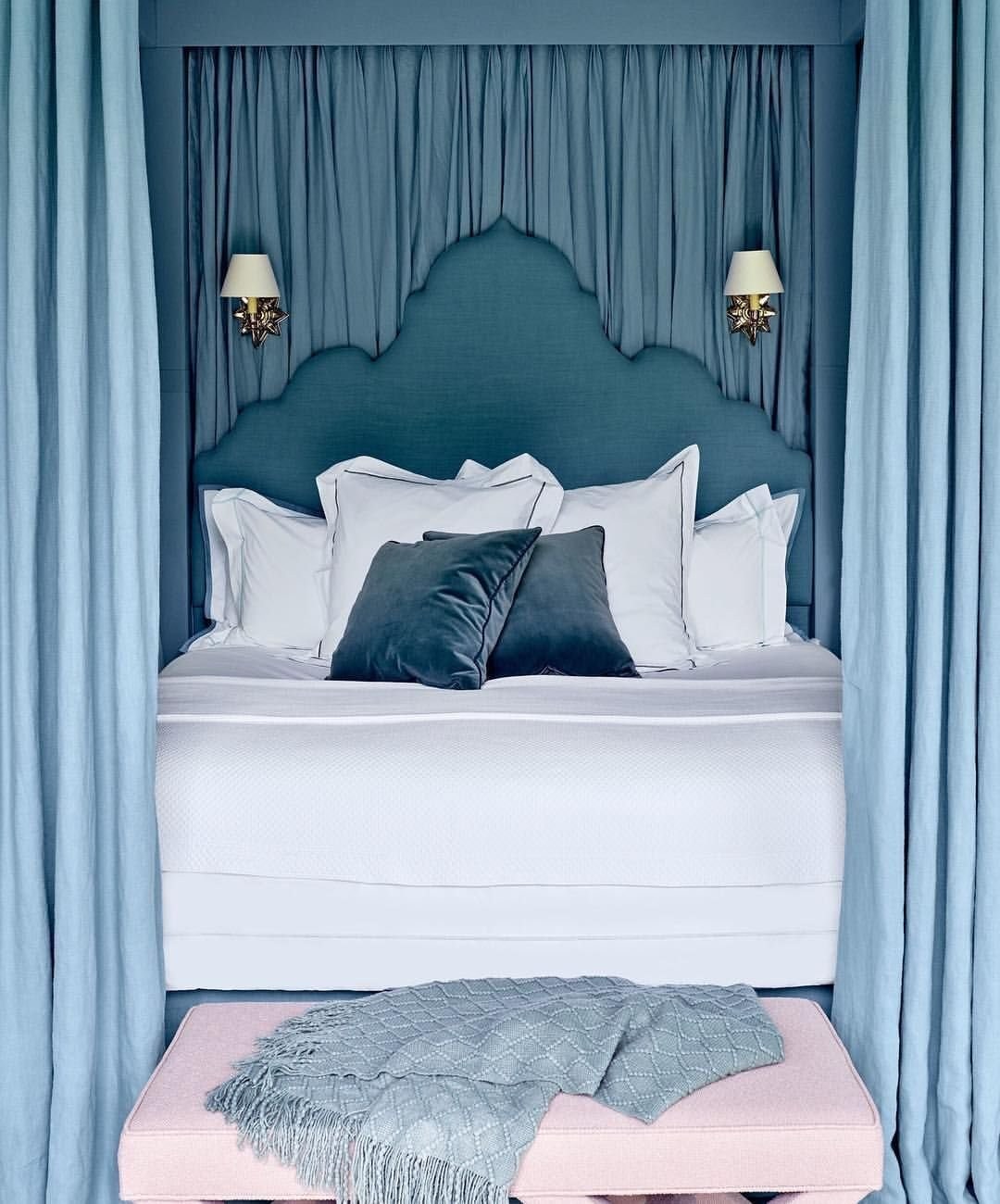 Спальня в голубых тонах с балдахином