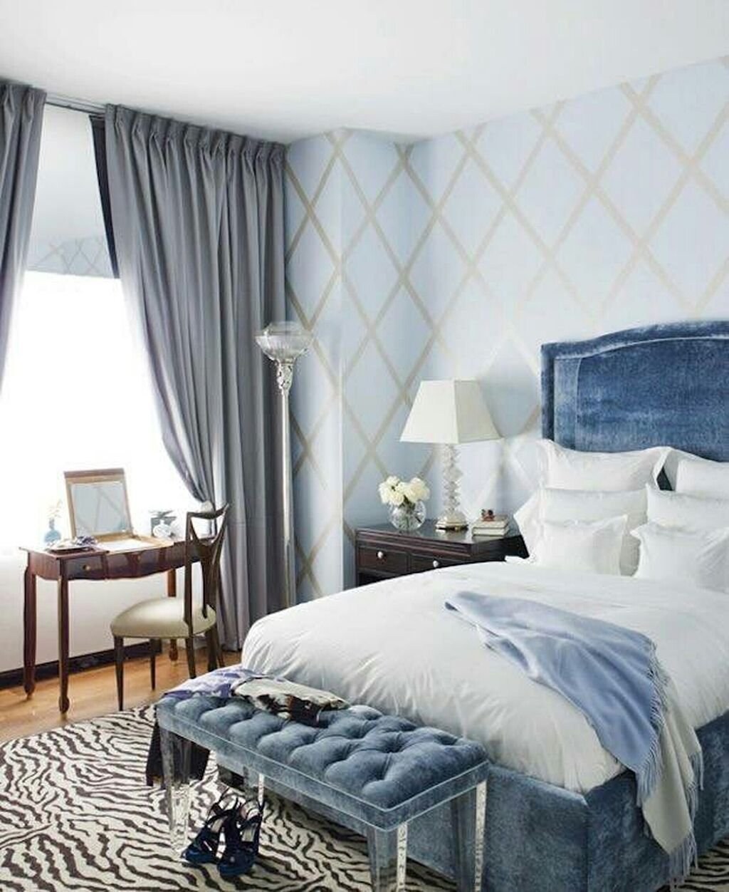 Серо голубая спальня
