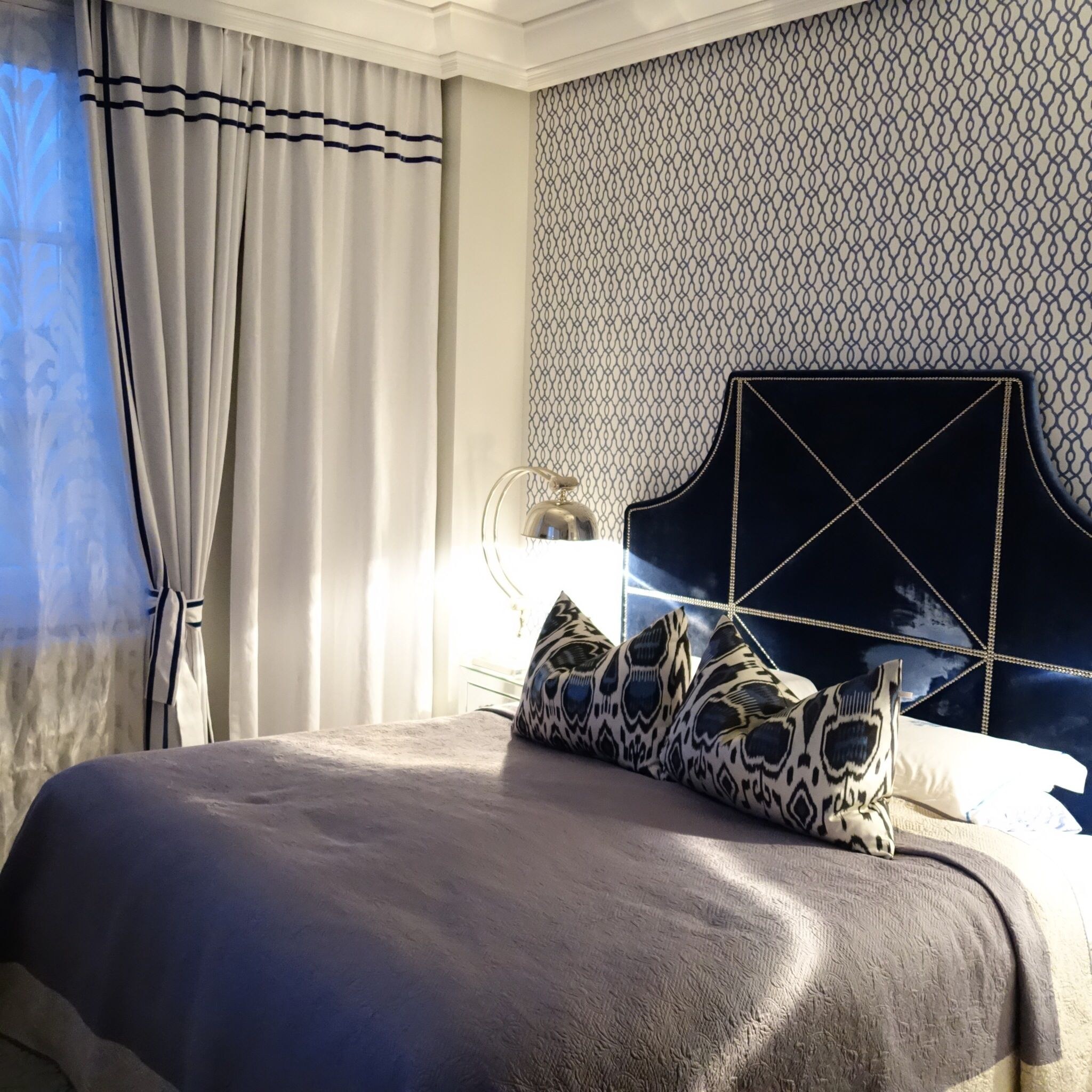 Темно синие шторы в спальне
