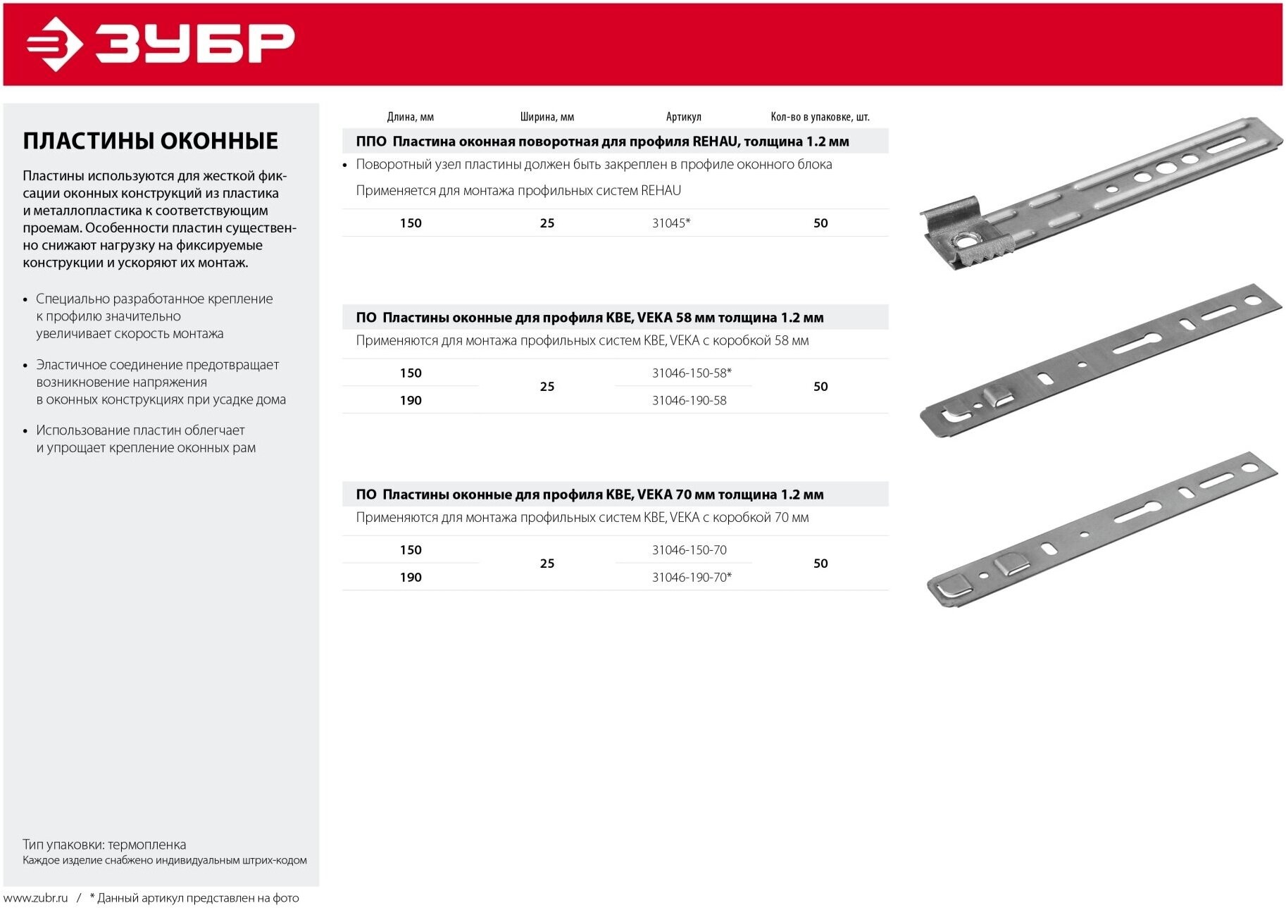 Пластина оконная поворотная ППО 150х25 х 1.2 мм для профиля Rehau, ЗУБР