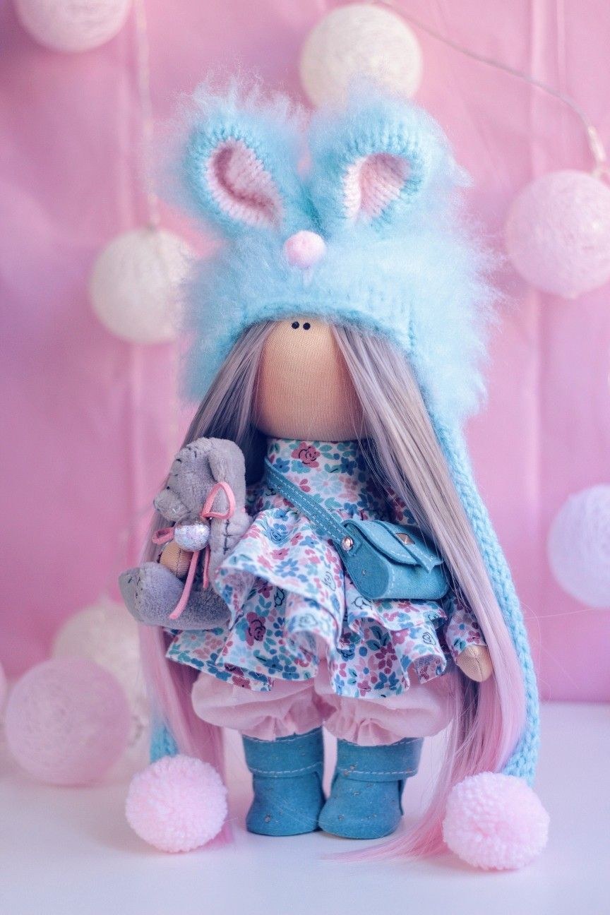 Текстильная кукла с заячьими ушками