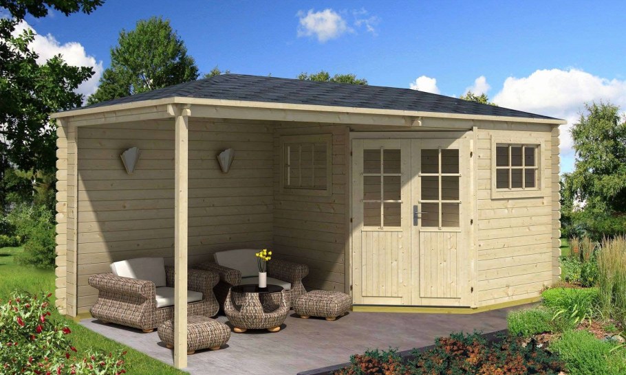 Хозблок для дачи с навесом (76 фото)