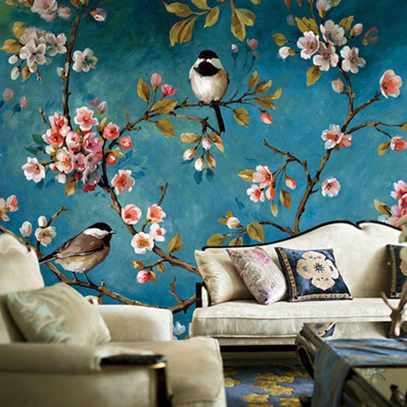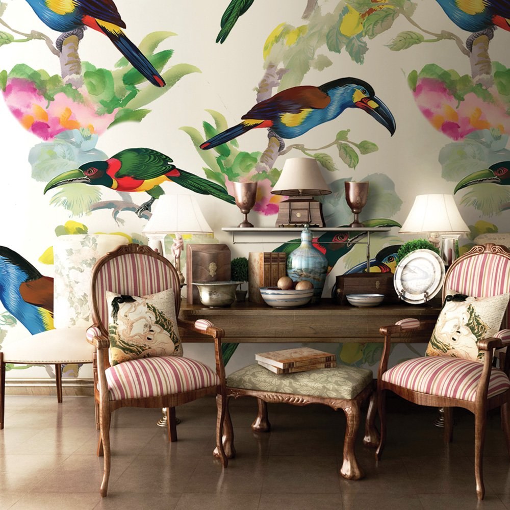 Обои с птичками для стен в интерьере