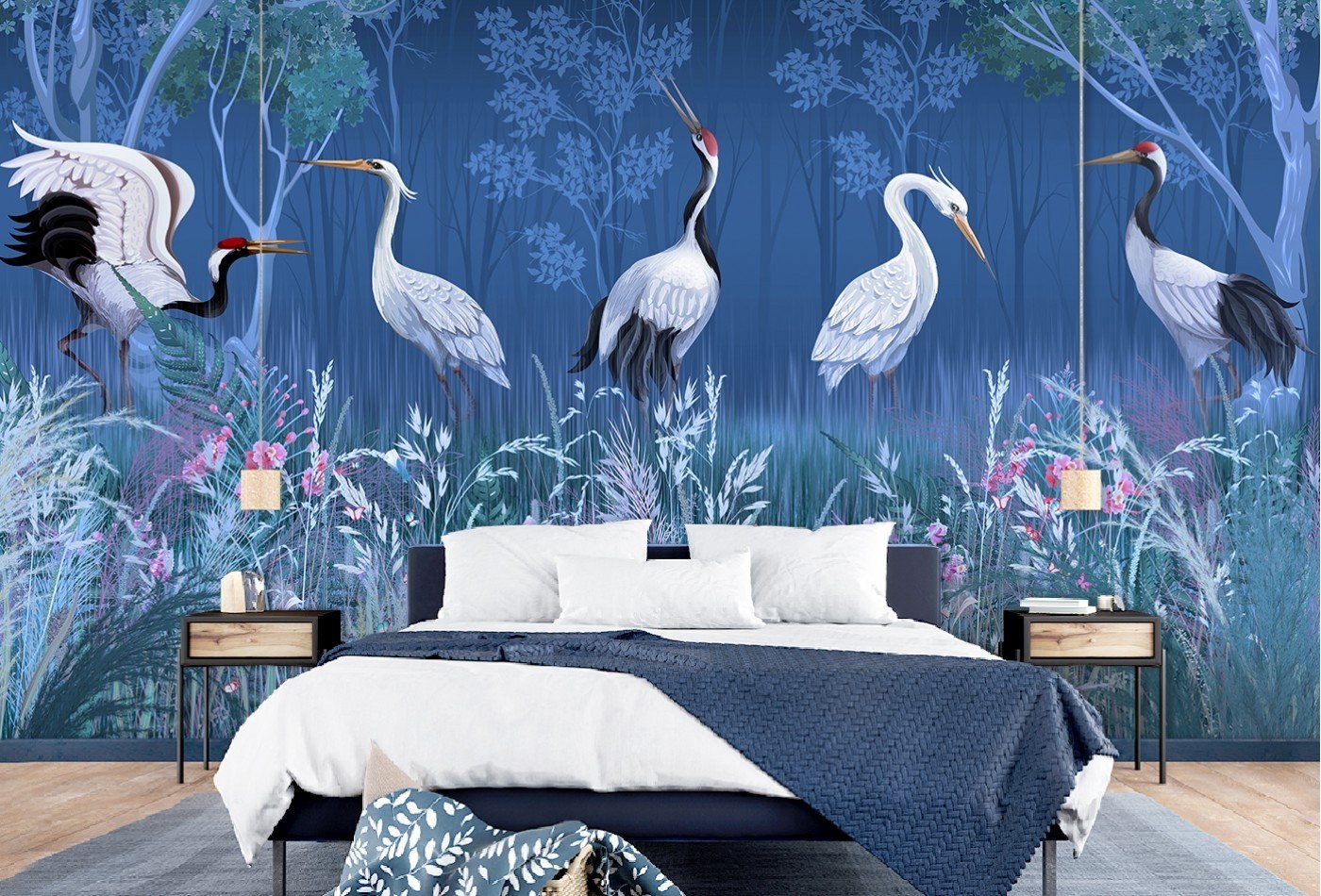 Обои с цаплями в интерьере